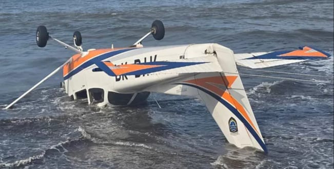 Banyuwangi, Suaraindonesis.Online- Sebuah pesawat latih dengan kode registrasi PK-BYK milik Akademi Penerbangan Indonesia (API) Banyuwangi yang membawa dua awak mengalami insiden darurat dan jatuh di perairan Pantai Gumuk Kantong, Desa Sumbersewu, Kecamatan Muncar, Kabupaten Banyuwangi, Selasa (4/2/2025).