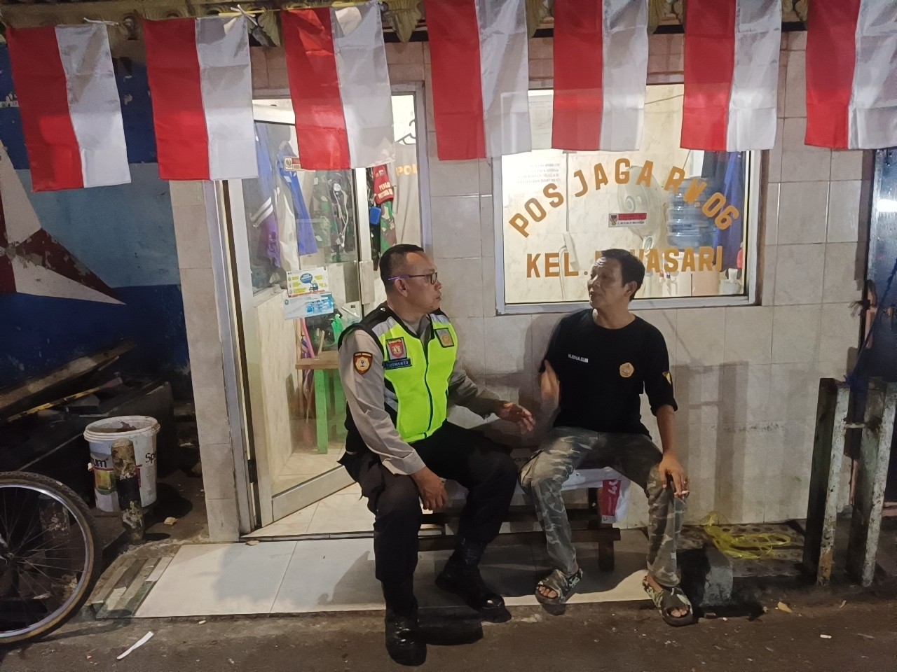 Jakarta Pusat – Anggota Polsek Cempaka Putih Aiptu Yuswanto melaksanakan sambang ke petugas siskamling di Jalan Bacang Cempaka Putih Jakarta Pusat. Sabtu (10/8/2024)
