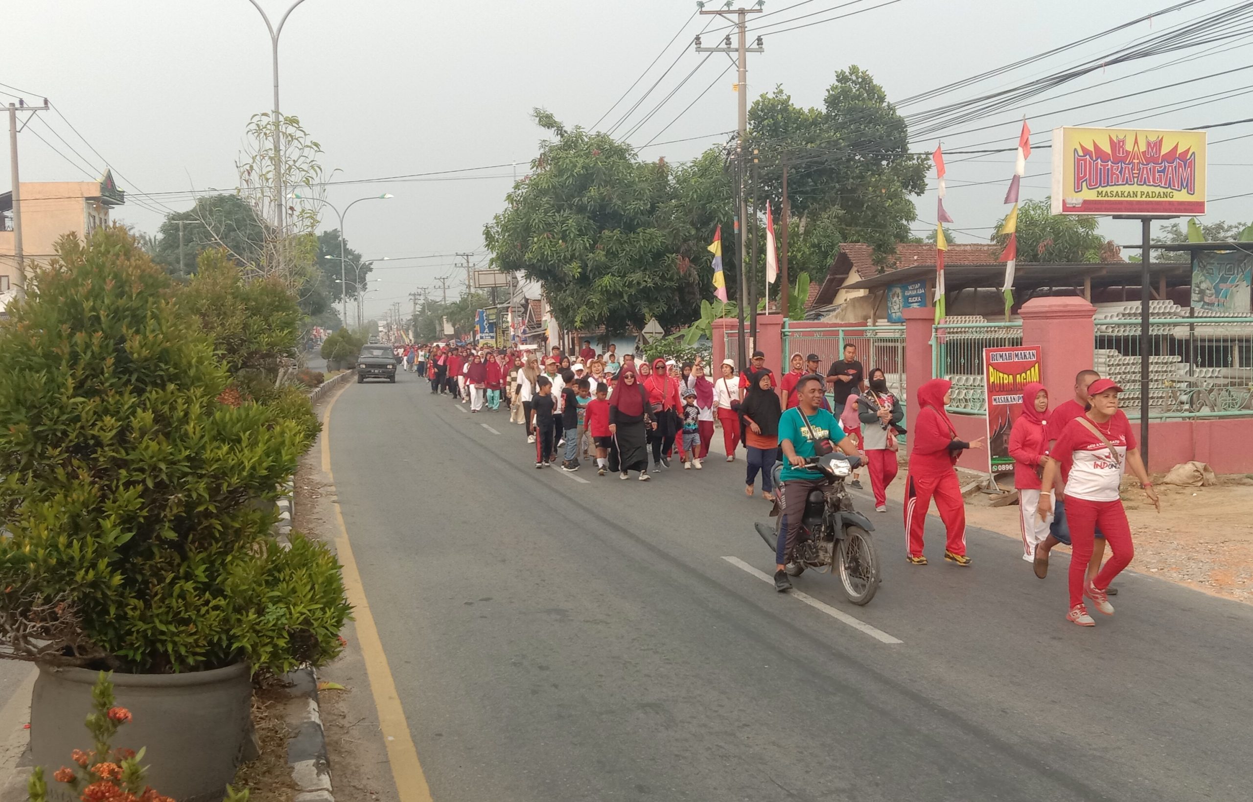 Dalam kegiatan lomba jalan sehat di puncak hari kemerdekaan Republik Indonesia ke-79 ratusan warga di kelurahan Ganjar Agung Metro barat telah antusias mengikuti kegiatan tersebut, dan nampak hadir Walikota Metro “dr. Wahdi, Sp.OG(K), MH” , Camat Metro Barat “Triyono” , Lurah Ganjar Agung “Kiswantara” , Ketua Tim Penggerak PKK Kota Metro “Ny.dr.Silfia” beserta kepala puskesmas Ganjar Agung Rochyani,ST.,MKes