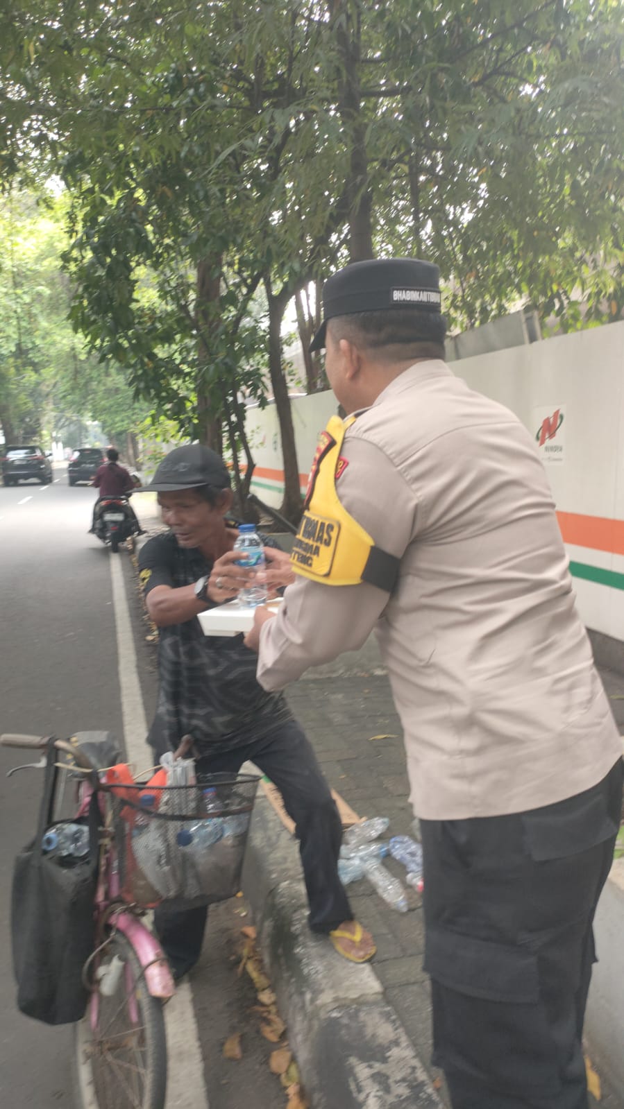 Jakarta Pusat – Bhabinkamtibmas Aiptu Kamidi melaksanakan kegiatan dengan membagikan nasi kotak gratis untuk makan siang kepada pejuang nafkah (sopir bajaj, Ojol, pemulung dan penjual kopi keliling) yang sedang istirahat maupun di perjalanan disekitar wilayah Kelurahan Gondangdia Menteng Jakarta Pusat. Sabtu (1/6/2024).