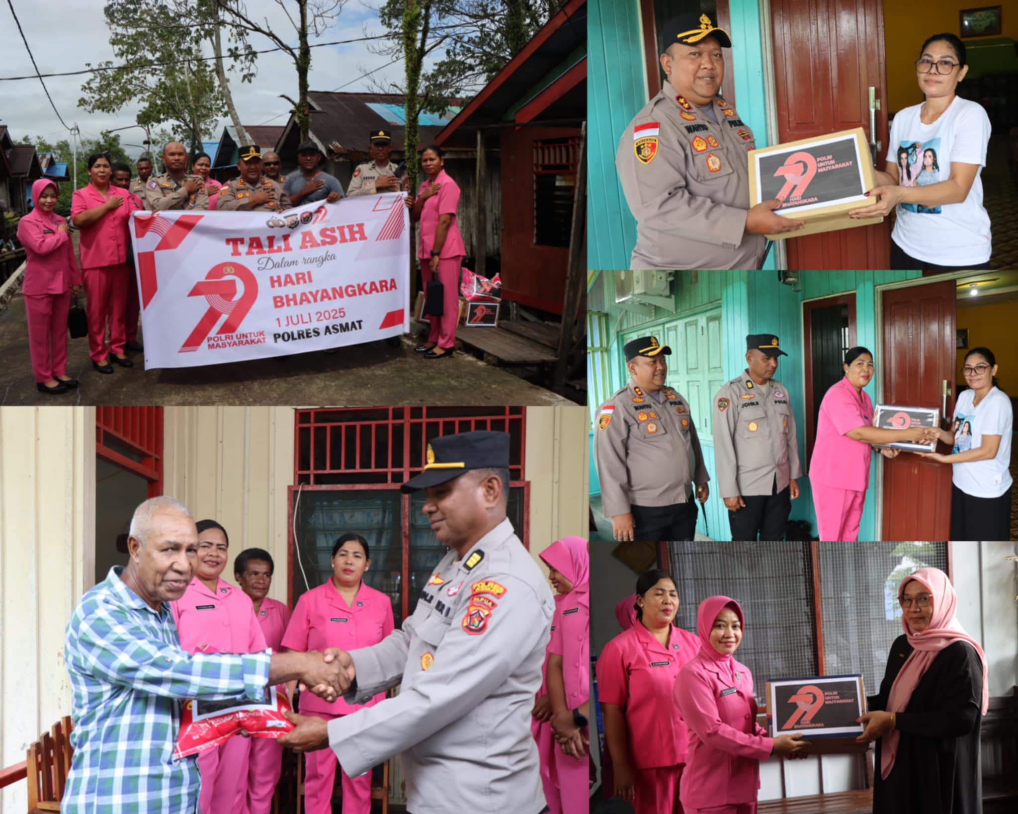 Asmat – Kapolres Asmat AKBP Wahyu Basuki, S.I.K., Bersama PJU Polres Asmat, Anggota Bintara Polres Asmat Dan Ibu-ibu Bhayangkari Cabang Asmat Laksanakan Tali Asih Kepada Purnawirawan Dan Warakawuri Polri, Bertempat Di Kota Agats, Sabtu (21/06/2025).
