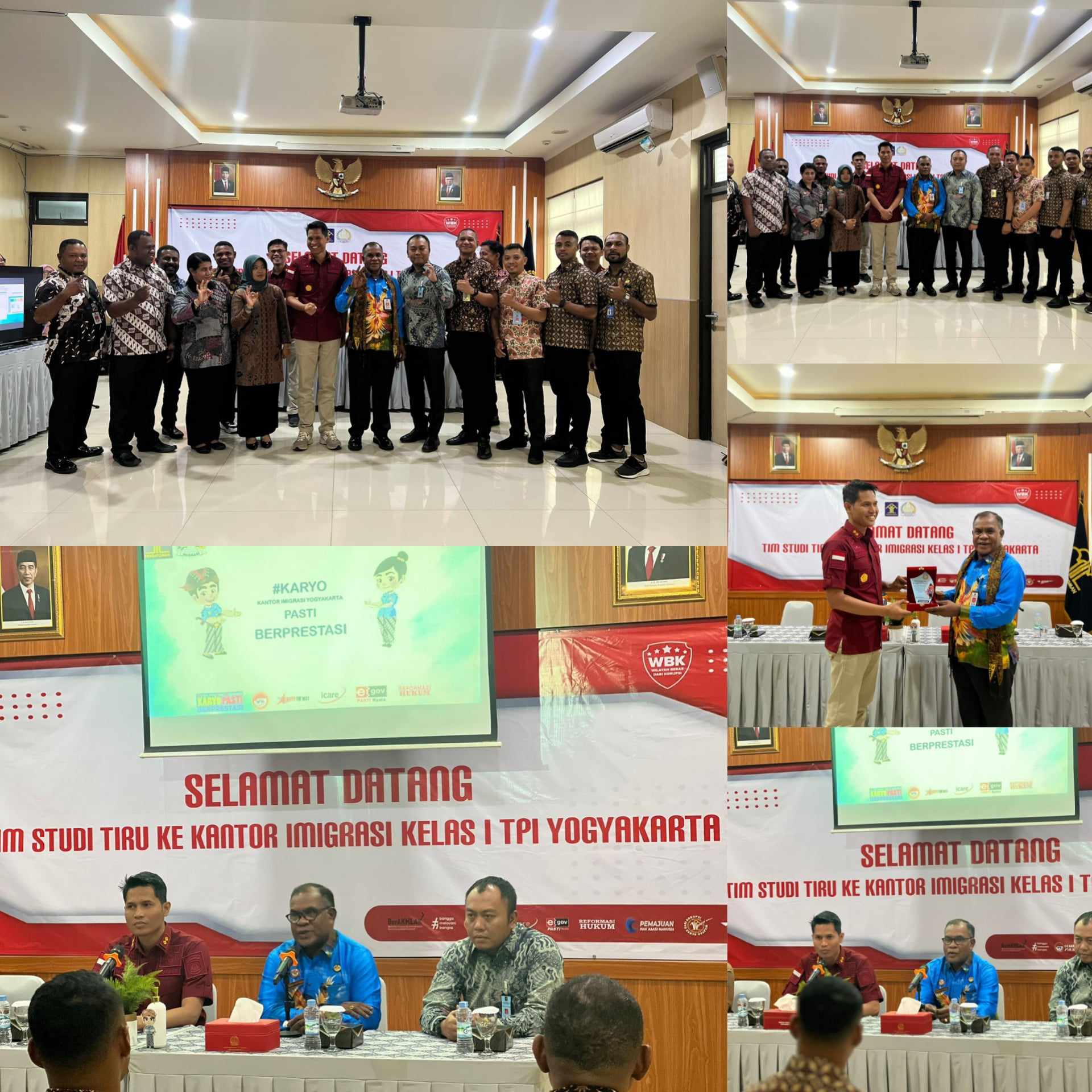 Yokyakarta– Setelah dari Kantor Imigrasi Kelas I TPI Cirebon, Kantor Imigrasi Kelas II TPI Biak kembali melakukan Studi Tiru terkait Penguatan Pembangunan Zona Integritas menuju Wilayah Birokrasi Bersih Melayani (WBBM) yang kali ini dilakukan di Kantor Imigrasi Kelas I TPI Yogyakarta.Kamis (07/09/2023),