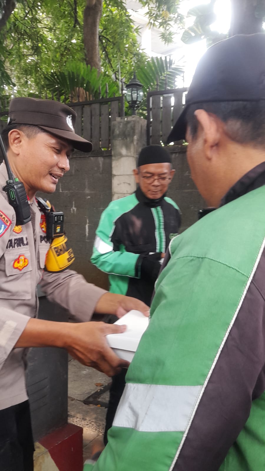 Pemberian nasi kotak siap saji tersebut dibagikan kepada petugas pertamanan, ojek online yang sedang menunggu orderan penumpang.