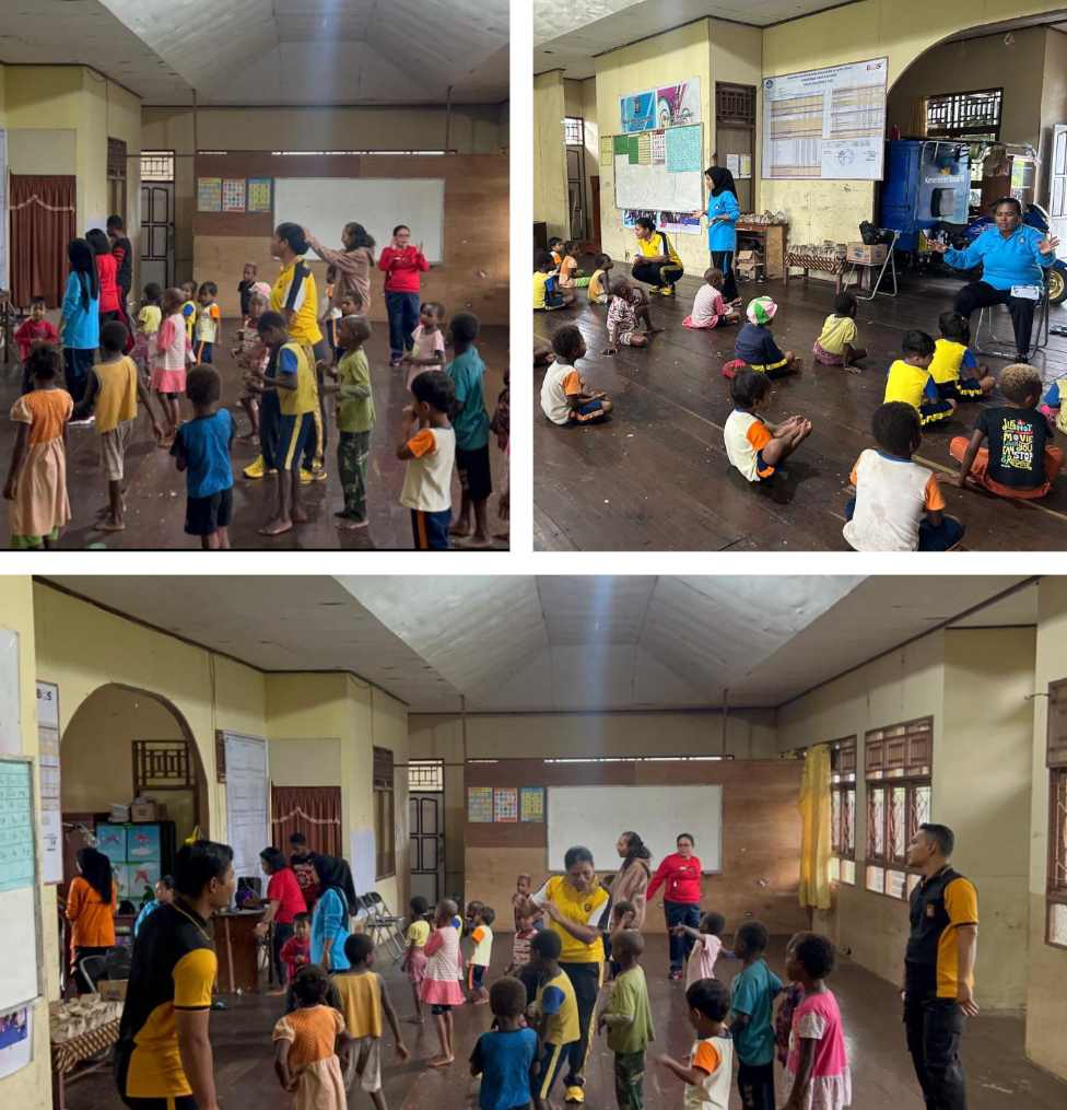 Sementara itu Bripka Yulianti Wameyop selaku Katim Pengajar menambahkan bahwa kegiatan ini diisi dengan pola pengajaran yang lebih menarik dimana anak anak di ajak untuk berolahraga, bernyanyi hingga melakukan permainan yang dapat menumbuhkan psikologis positif serta kecermatan dimana hal hal ini yang harusnya di bagun sejak dini agar kedepan setelah dewasa mereka mempunyai pemikiran serta wawasan yang luas.