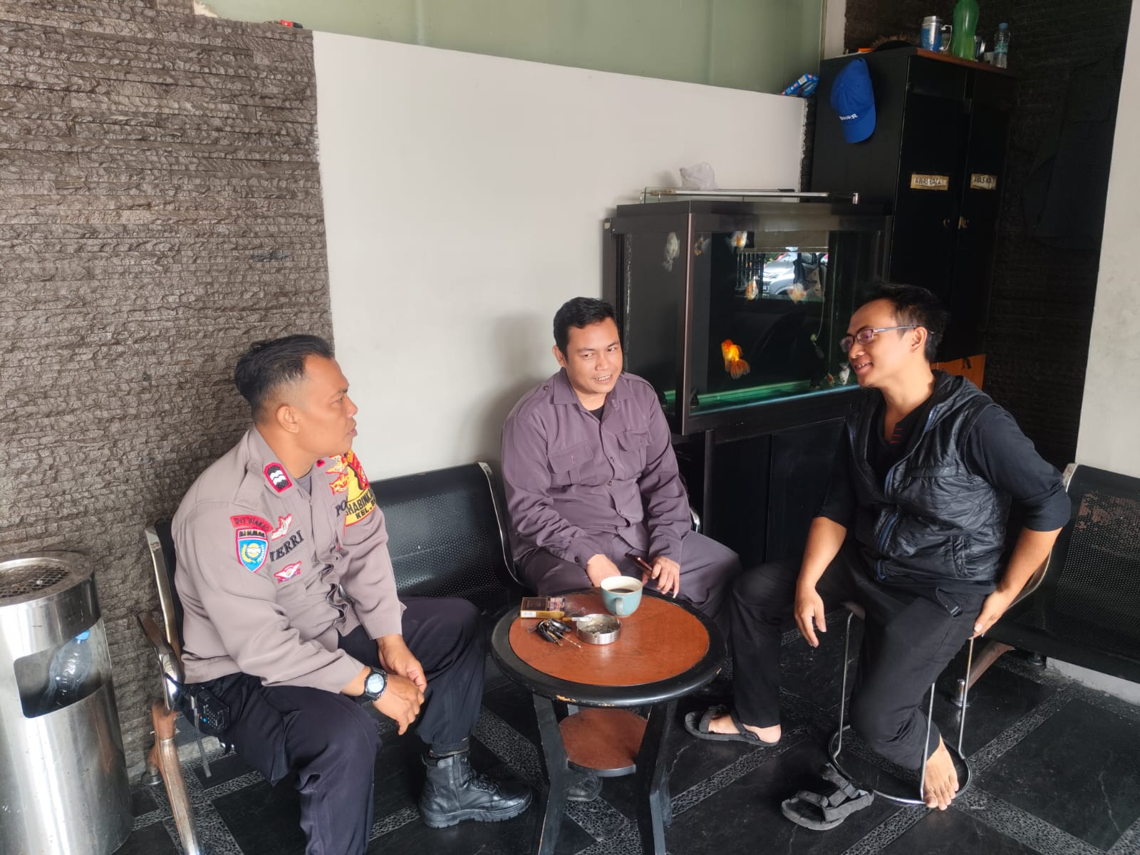 Sambangi Kantor K Lab Aiptu Heri bertemu Bayu selaku Petugas keamanan berikan imbauan kamtibmas agar laksanakan tugas sesuai dengan SOP yang berlaku dan tanggung jawab dan antisipasi curanmor jangan sampai terjadi kehilangan dan apabila mendapati pelaku tindak pidana jangan main hakim sendiri.