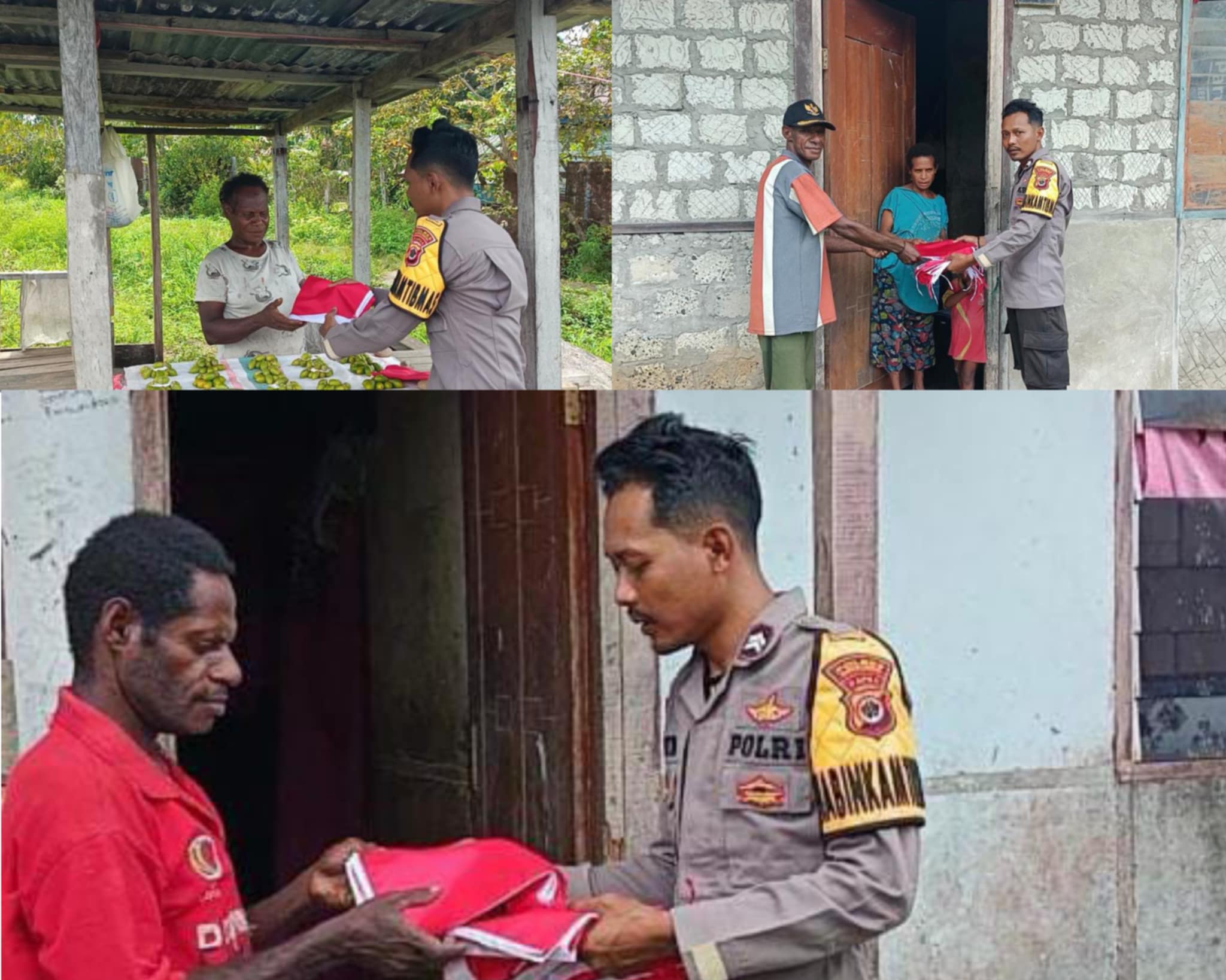 Bhabinkamtibmas Brigpol Arya P. Pramana menyampaikan bahwa “dengan membagikan bendera Merah Putih kepada warga kampung Mandobo untuk memeriahkan serta menumbuhkan rasa nasionalisme warga dalam menyambut HUT RI ke – 80