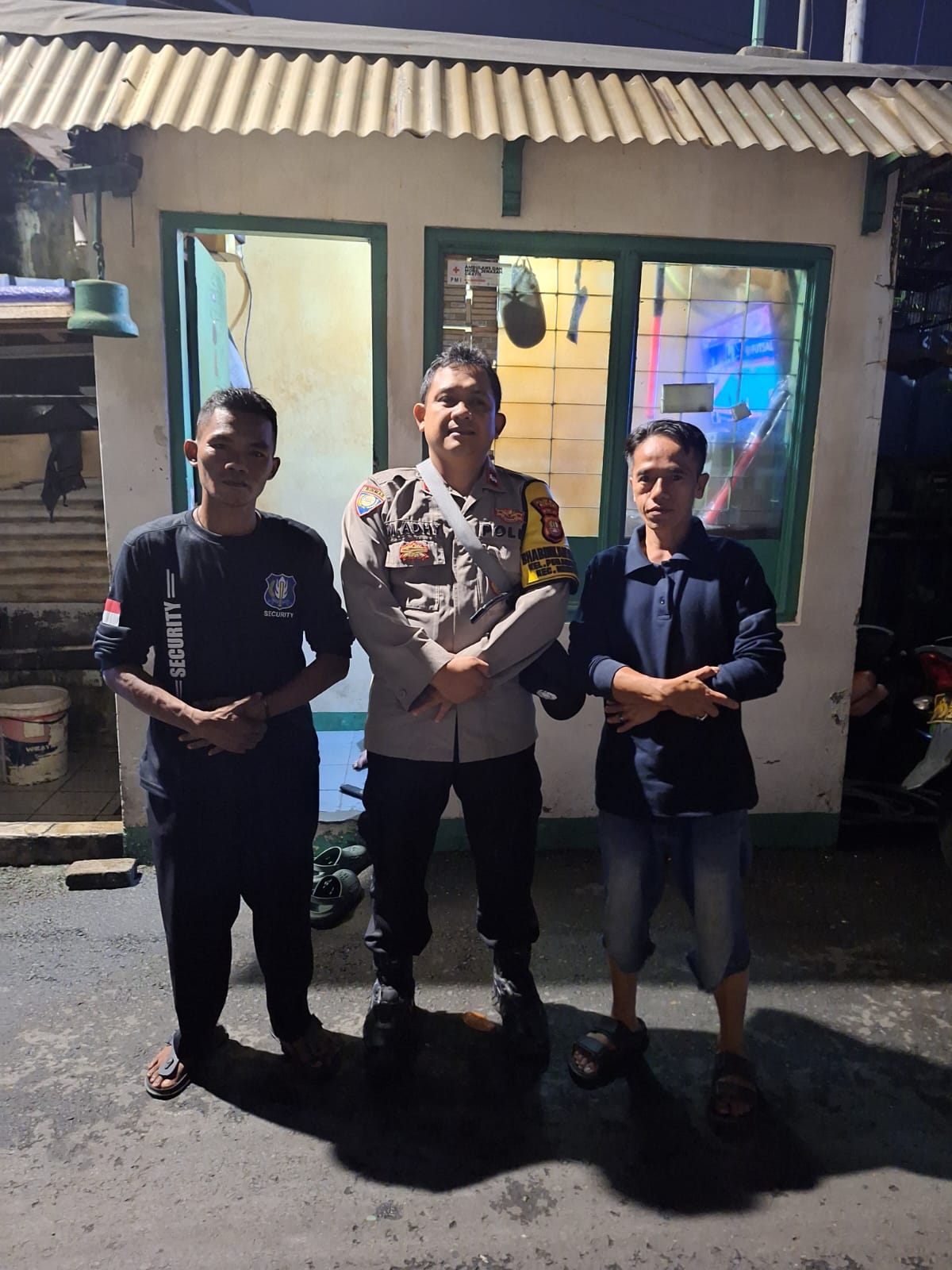 Kegiatan ini menjadi bagian dari upaya preventif kepolisian dalam membangun komunikasi aktif dengan masyarakat. Dalam kunjungan tersebut, Aipda Adhy berdialog langsung dengan petugas keamanan lingkungan, Bapak Syamsi dan Bapak Idrus, yang tengah melaksanakan tugas ronda.