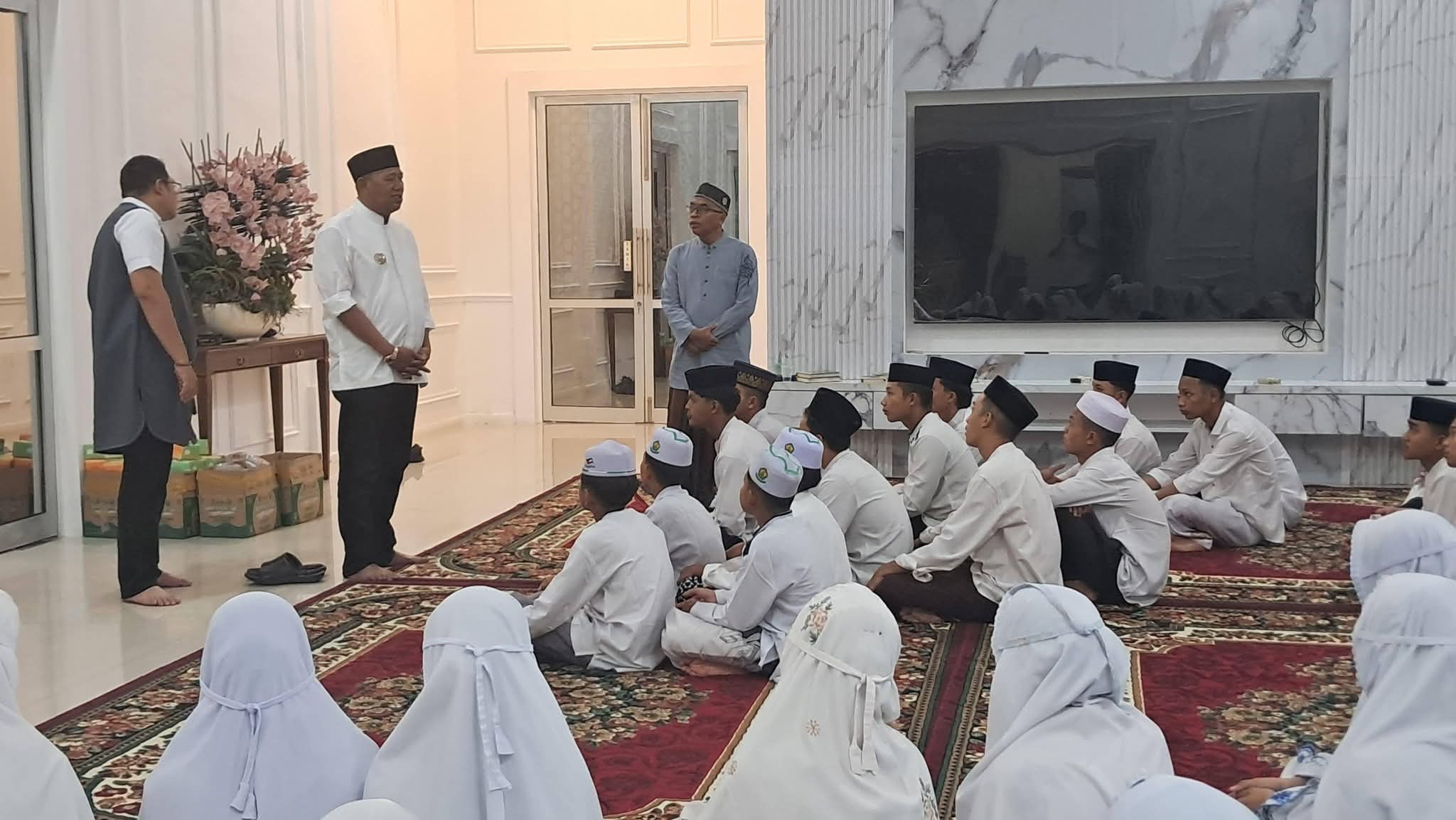 Langkat. Suaraindonesia.online- Bupati Langkat H. Syah Afandin, SH menerima kunjungan 100 santri Pondok Pesantren Ulumul Quran di Rumah Dinas Bupati Langkat, Rabu (25/2/2026). Kegiatan tersebut merupakan tradisi tahunan yang telah berlangsung sejak masa kepemimpinan almarhum H. Syamsul Arifin, yang juga merupakan abang kandung Bupati Syah Afandin.