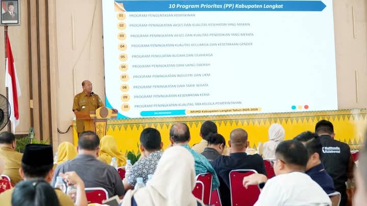Kepala Bappedalitbang Langkat, Rina Wahyuni Marpaung, S.STP, M.AP, dalam laporannya menyampaikan bahwa RPJMD adalah dokumen strategis yang memuat penjabaran visi, misi, dan program kepala daerah untuk lima tahun mendatang. Penyusunan dokumen ini harus berpedoman pada RPJPD dan mempertimbangkan RPJMN. Berdasarkan Instruksi Menteri Dalam Negeri Nomor 2 Tahun 2025, RPJMD kabupaten harus ditetapkan paling lambat enam bulan setelah pelantikan kepala daerah atau setelah RPJMD provinsi disahkan.