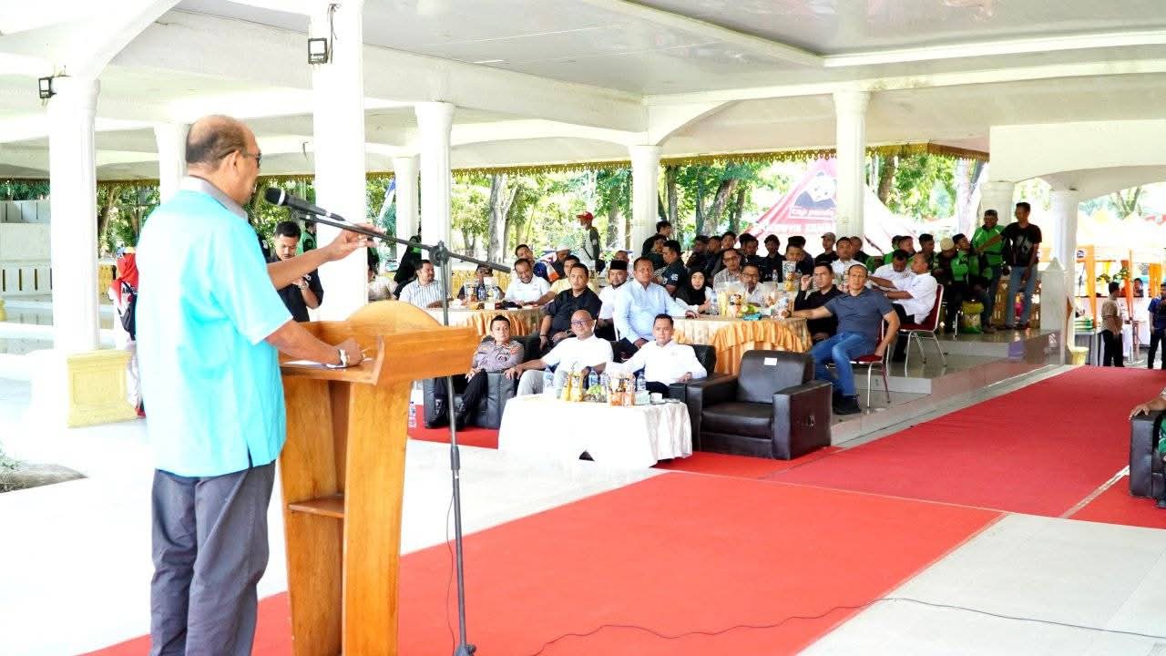 Acara yang dirangkai dengan pagelaran UMKM tersebut juga disemarakkan dengan kegiatan sosial berupa pembagian 150 karung beras ukuran 5 kilogram kepada para pengemudi ojek online (ojol).