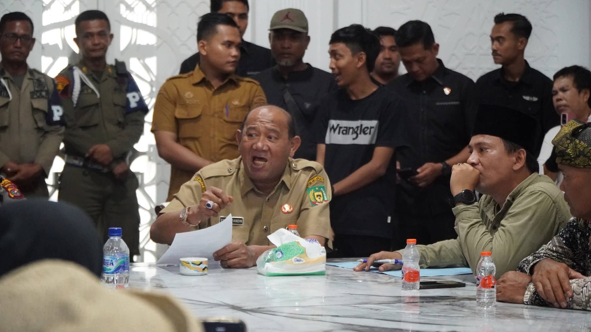 Usai mediasi, H. Syah Afandin bersama perwakilan massa bergerak menuju Alun-alun T. Amir Hamzah untuk mendengarkan langsung aspirasi dari ratusan korban banjir yang telah berkumpul.