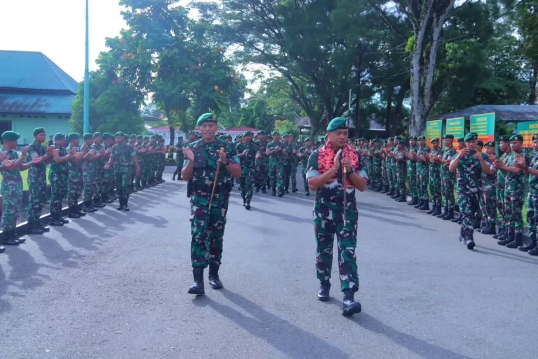 Setelah menerima pengalungan selendang kehormatan dan hormat jajar, Danbrigif melangkah gagah melalui Lorong Prajurit diiringi gema lagu “Selamat Datang” dari para prajurit dan personel satuan musik. Suasana penuh semangat itu mencerminkan kebanggaan dan kekompakan prajurit Yonif 754/ENK.