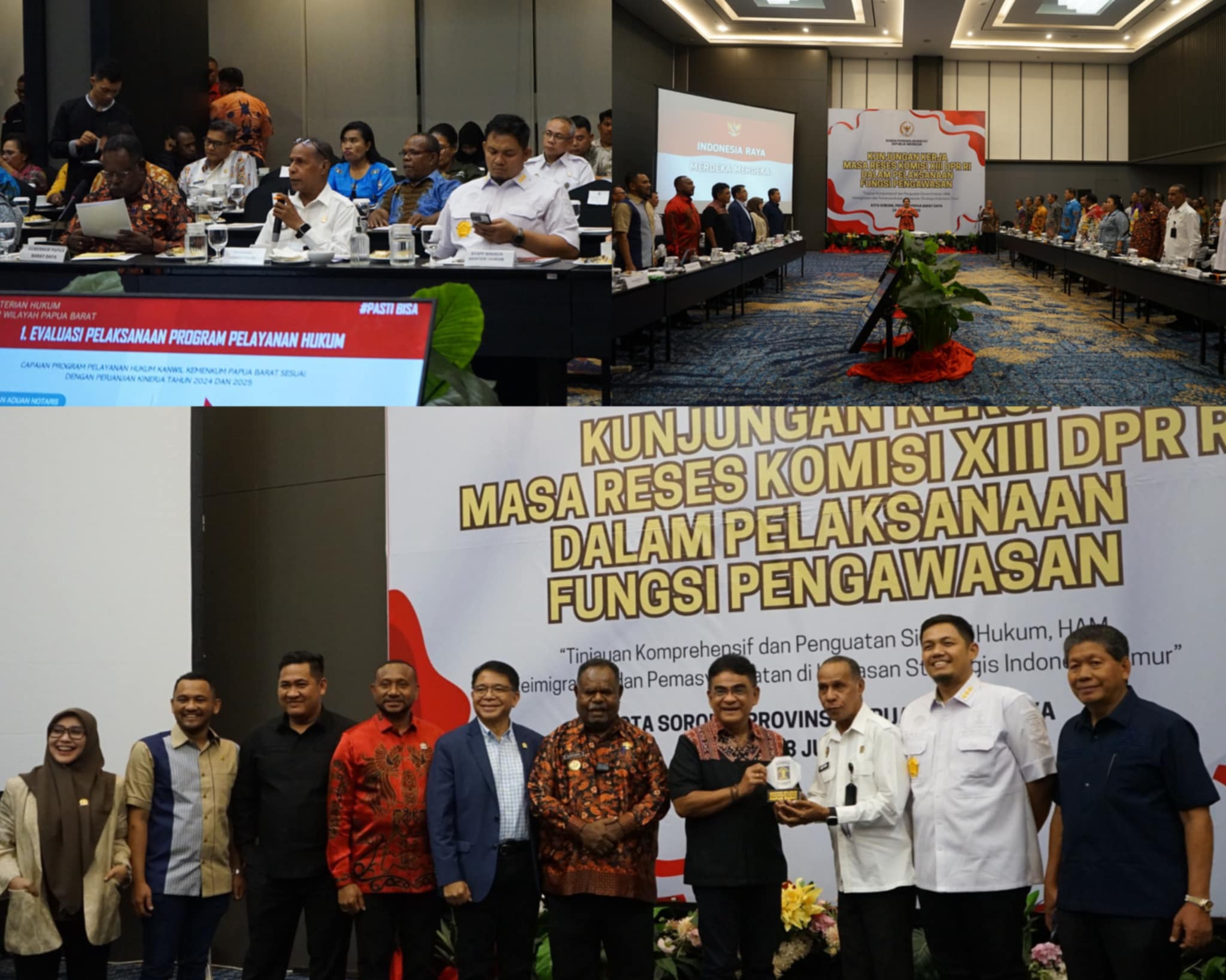 Sorong, Papua Barat Daya — Kantor Wilayah Kementerian Hukum Papua Barat (Kanwil Kemenkum Pabar) mengikuti Rapat Dengar Pendapat (RDP) dalam rangka Kunjungan Kerja Masa Reses Komisi XIII DPR RI Dalam Pelaksanaan Fungsi Pengawasan yang diselenggarakan pada Kamis (19/06/2025) di Aston Hotel Sorong.