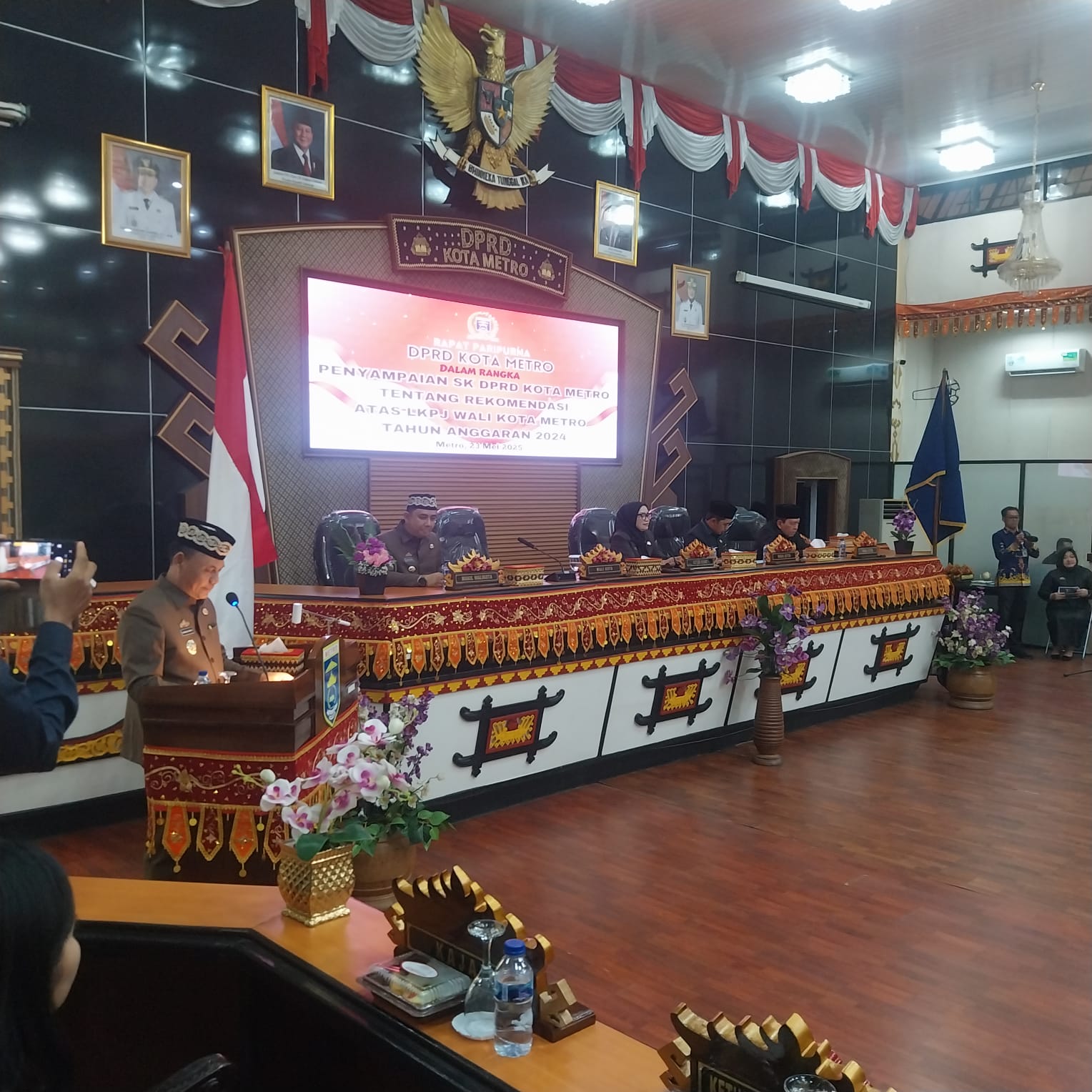Berdasarkan SK Dewan Perwakilan Rakyat Daerah (DPRD) Kota Metro dengan nomor.100.1.7/05/DPRD/2025 tentang rekomendasi stas LKPJ Wali Kota Metro tahun anggaran 2024 di bacakan langsung oleh Anggota DPRD Kota Metro dari Fraksi PKS Roma Doni Yunanto, S.Pt.