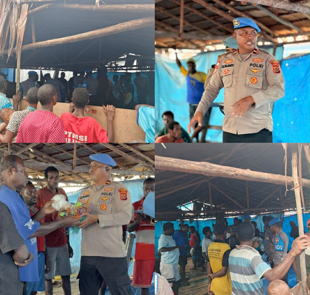 Asmat – Kapolres Asmat AKBP Wahyu Basuki, S.I.K., melalui Kasi Propam Polres Asmat Ipda Sem Talahatu, S.H., serahkan bantuan 40 jaringan kepada kelompok nelayan Kampung Yufri, Kampung Atat dan Masyarakat Pulau Tiga, Bertempat Di Pelabuhan Lama, Kamis (30/10/2025).