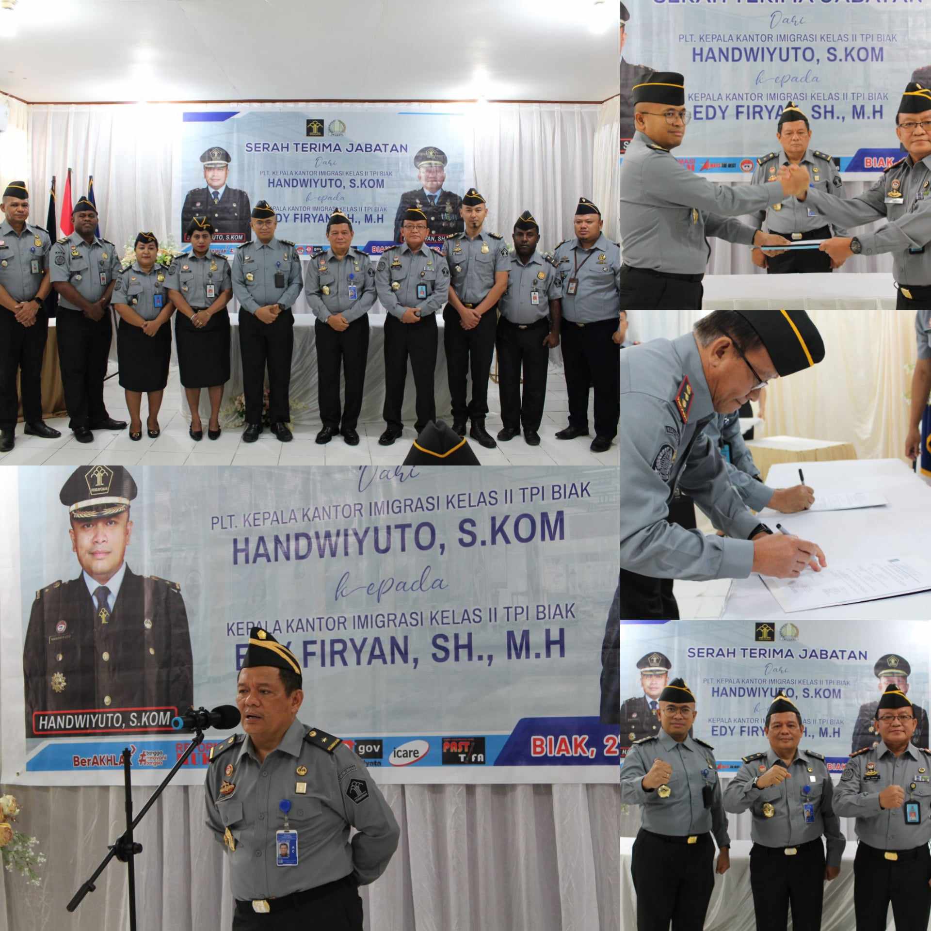 Pada kesempatan yang sama, beliau turut mengungkapkan apresiasi kepada Bapak Handwiyuto yang sebelumnya ditunjuk sebagai Plt. Kepala Kantor Imigrasi Kelas II TPI Biak karena telah memimpin Kantor Imigrasi Biak dalam masa kekosongan jabatan Kepala Kantor Imigrasi Biak.