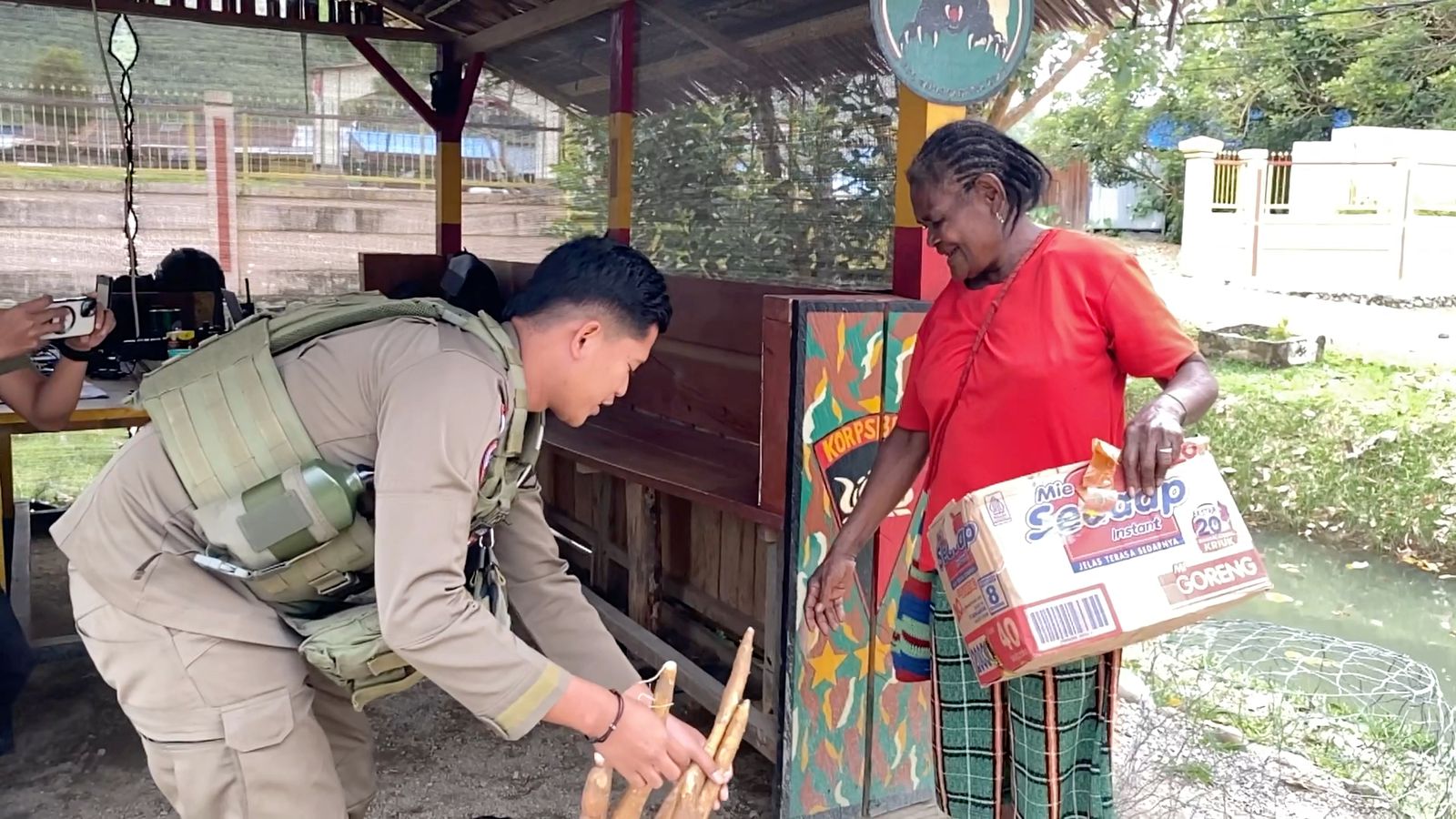 Sebagai bentuk balasan, personel Damai Cartenz 2025 menawarkan sekardus mi instan kepada Mama Elliyah, sebagai wujud perhatian kepada masyarakat yang telah menunjukkan kebaikan hati mereka.