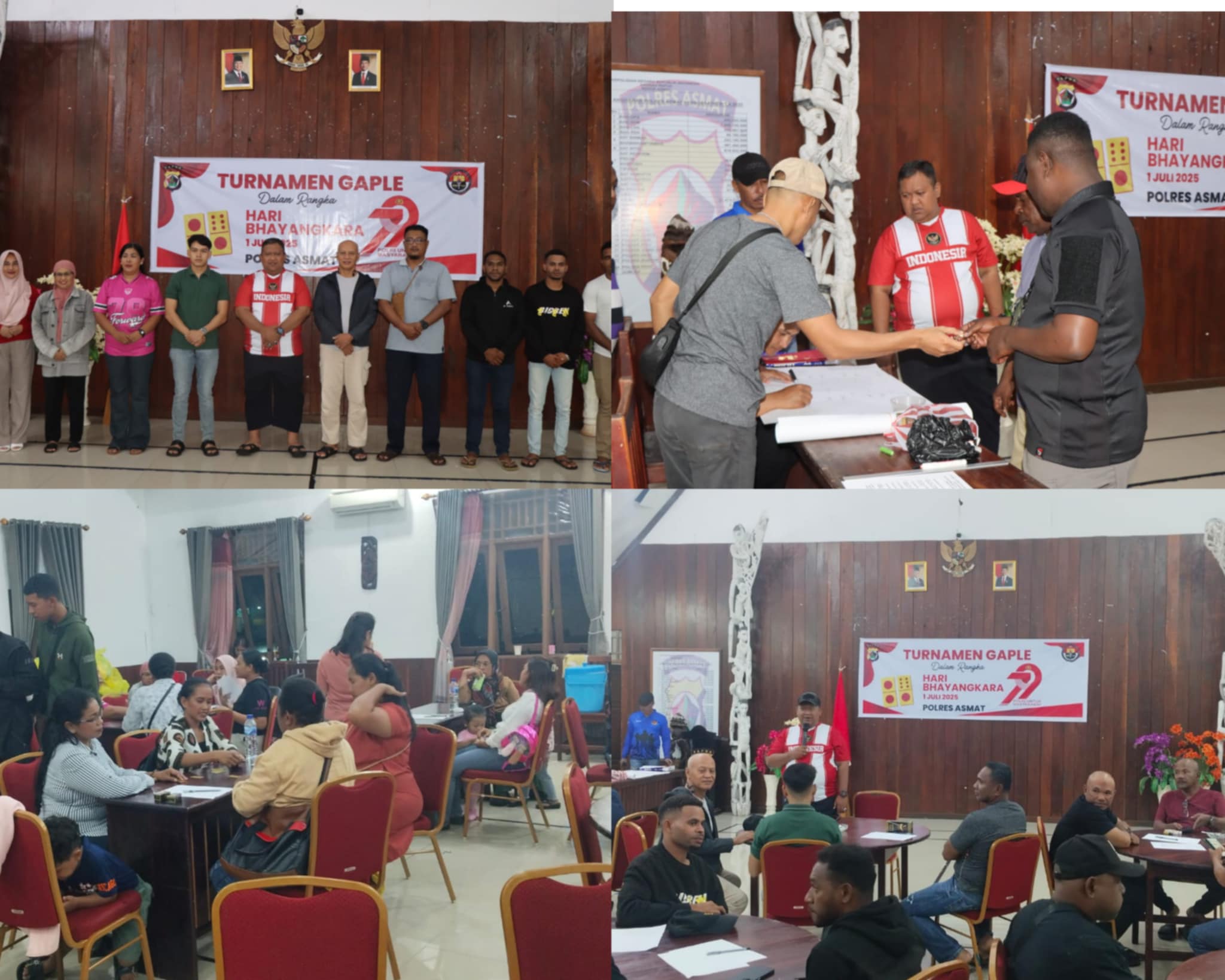Agats — Dalam rangka memeriahkan Hari Ulang Tahun Bhayangkara Ke-79, Kepolisian Resor Asmat menggelar turnamen Gaple yang, Bertempat Di Wira Pratama Polres Asmat, Sabtu (28/06/2025).
