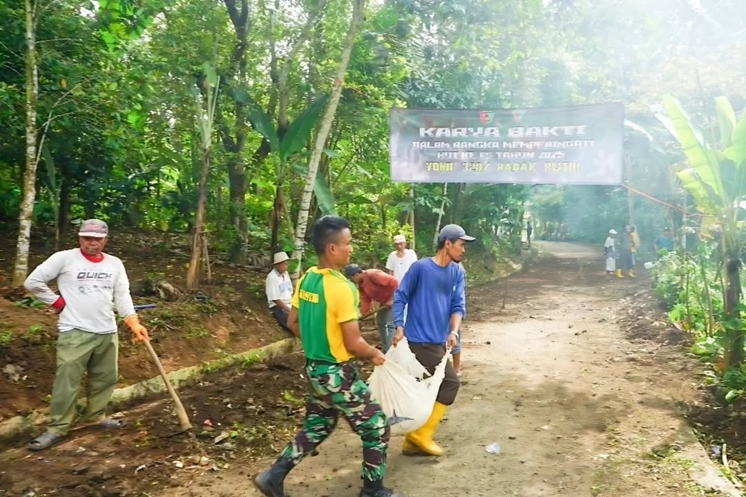 Karya bhakti dilakukan dengan membersihkan jalan dan mushola wilayah Desa binaan Kompi Senapan C Yonif 320/Badak Putih. Prajurit Yonif 320/Badak Putih bersama warga setempat bergotong royong dalam semangat kebersamaan dan pengabdian.
