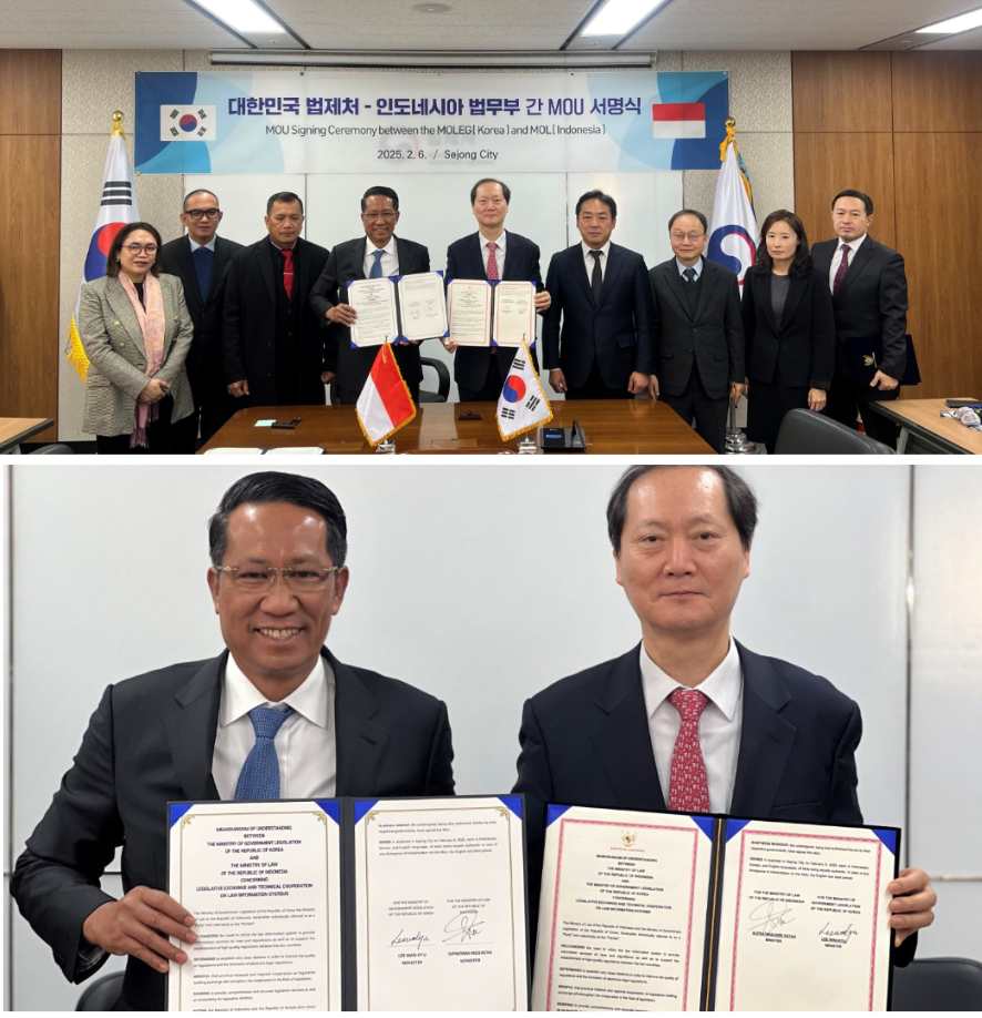 Sejong, Korsel – Pemerintah Indonesia dan Korea Selatan (Korsel) menandatangani Memorandum Saling Pengertian (MSP) tentang pertukaran legislasi dan kerja sama teknis sistem informasi hukum, Kamis (06/02/2025) di kota Sejong, Korsel.