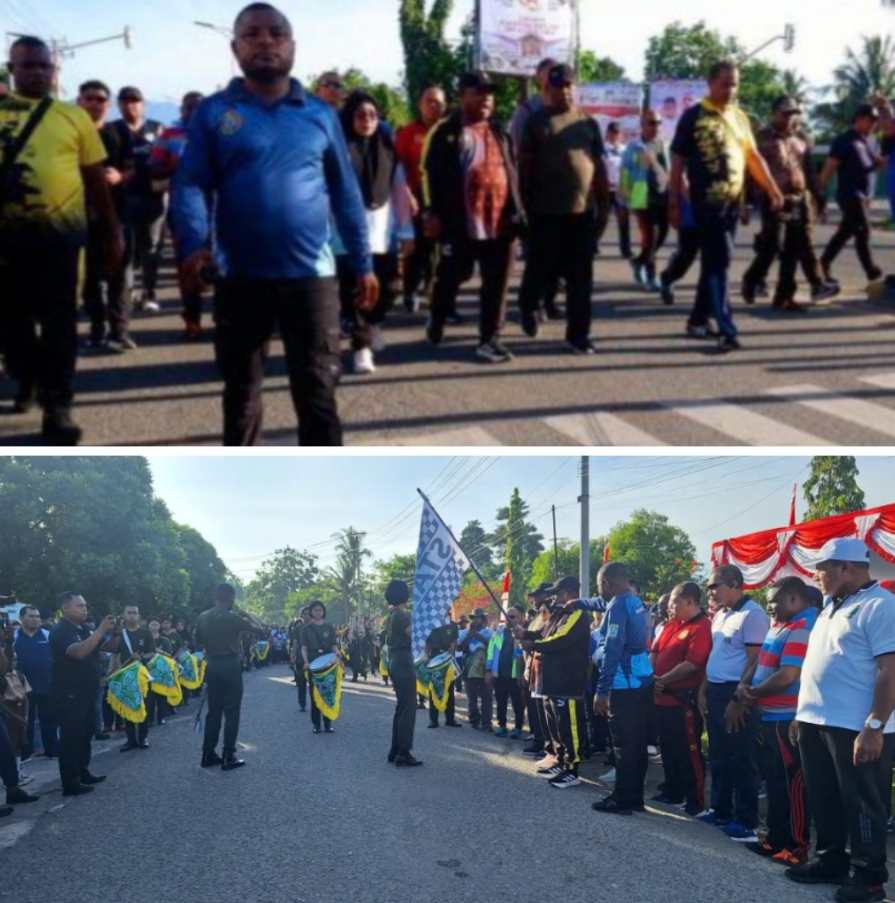Setelah melepas peserta jalan santai, Pj Gubernur bersama Kasdam, Wakapolda ASN, TNI, Polri jalan sehat hingga finish di lapangan Kodim Manokwari.
