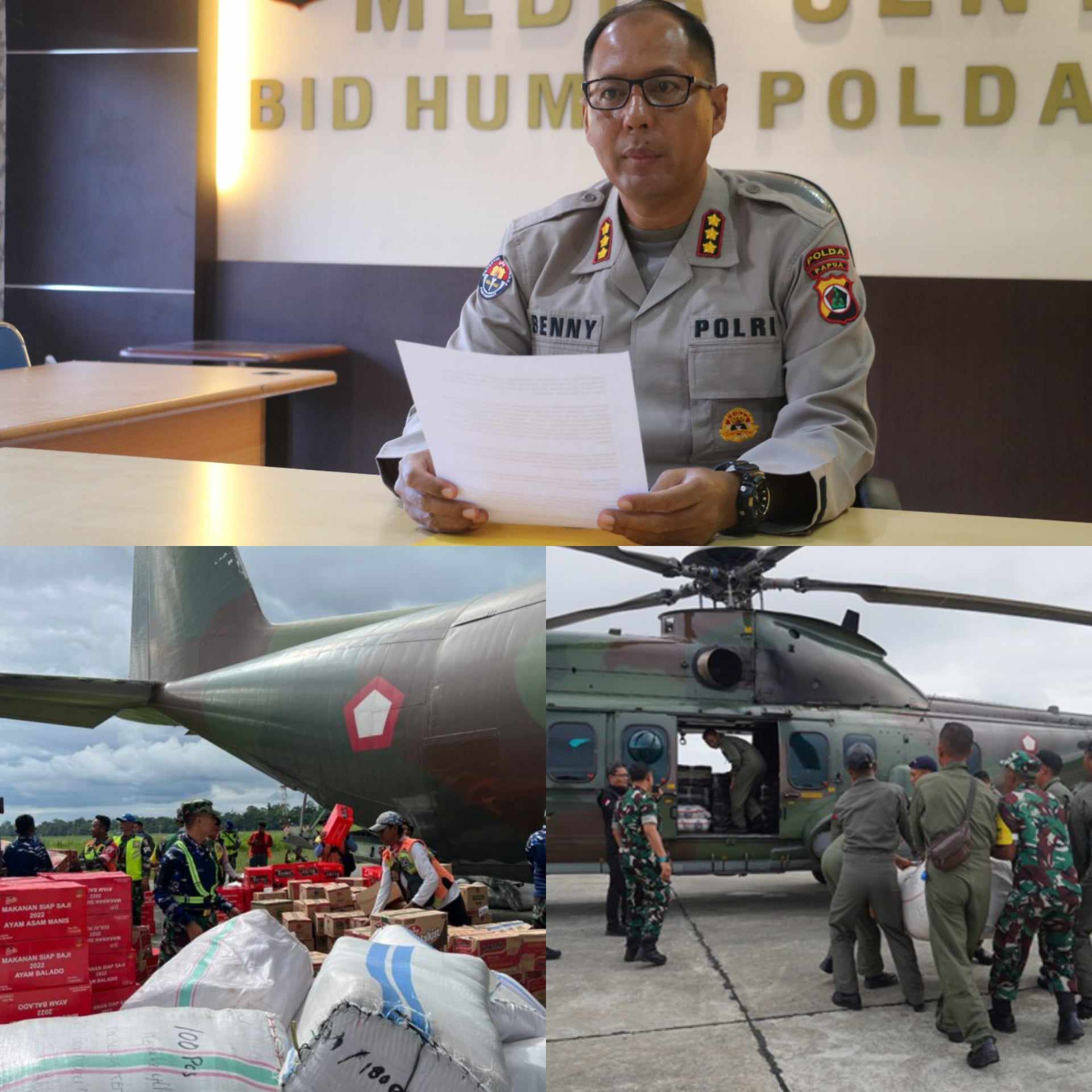 Kabid Humas Polda Papua Kombes Pol. Ignatius Benny Ady Prabowo, S.H., S.I.K., M.Kom., mengatakan bahwa hari ini, Rabu (26/07/2023) bantuan tersebut telah diangkut menggunakan Helikopter Caracal milik TNI AU dan dua pesawat jenis caravan dari Bandara Mozes Kilangin Timika menuju Distrik Sinak.