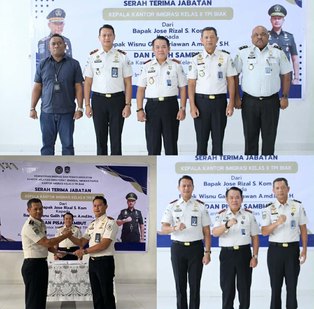 Biak Numfor – Kantor Imigrasi Kelas II TPI Biak menggelar acara Serah Terima Jabatan (Sertijab) Kepala Kantor sekaligus pisah sambut Kepala Kantor dan Kepala Seksi Intelijen dan Penindakan Keimigrasian (Inteldakim), Jumat (9/1/2026).