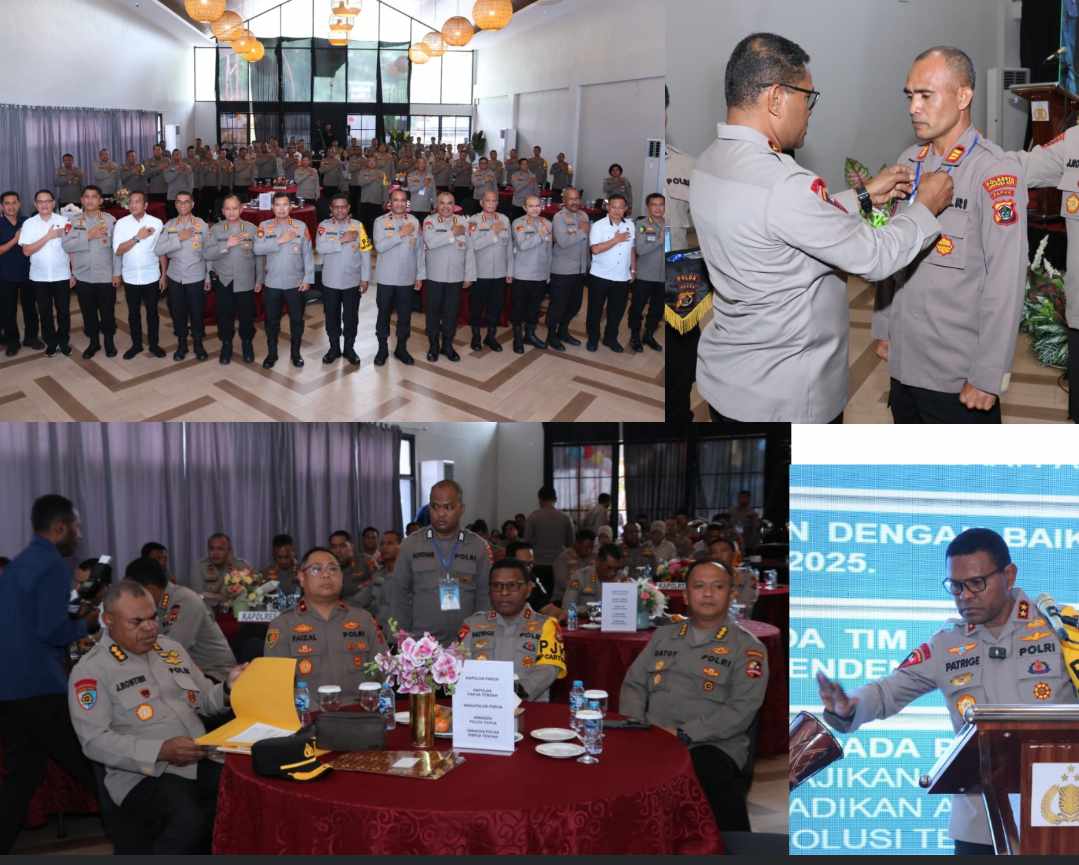 Jayapura – Kapolda Papua, Irjen Pol Patrige Renwarin, S.H., M.Si., Membuka Acara Rakernis Fungsi Pengawasan, Bimtek Maturitas SPIP, Manajemen Resiko dan Peningkatan Kapasitas Aparat Pengawasan Intern Pemerintah (APIP) bagi Personel Fungsi Pengawasan T.A. 2025, pada Rabu (23/04/25).