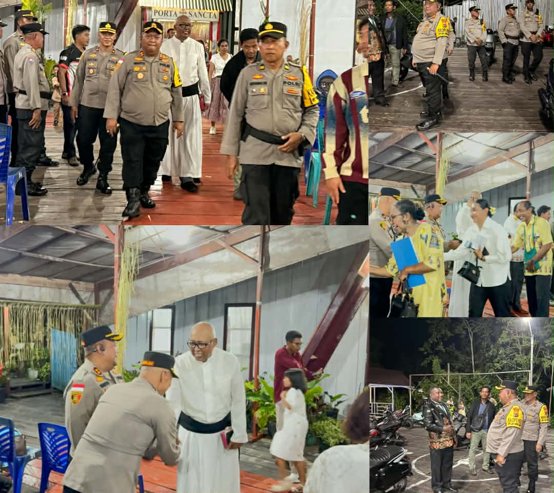 Asmat – Kapolres Asmat AKBP Wahyu Basuki, S.I.K., bersama PJU Polres Asmat Laksanakan Monitoring perayaan ibadah Malam Kudus, Agats (24/12/2025).