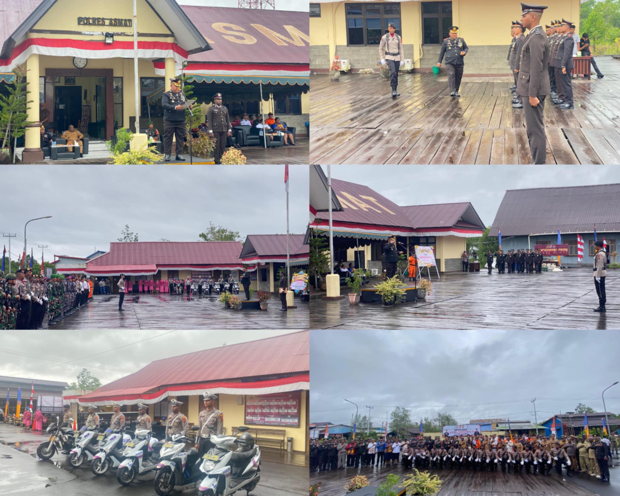 Upacara Hari Bhayangkara Ke-79 dipimpin oleh Kapolres Asmat AKBP Wahyu Basuki, S.I.K., sebagai Inspektur upacara.