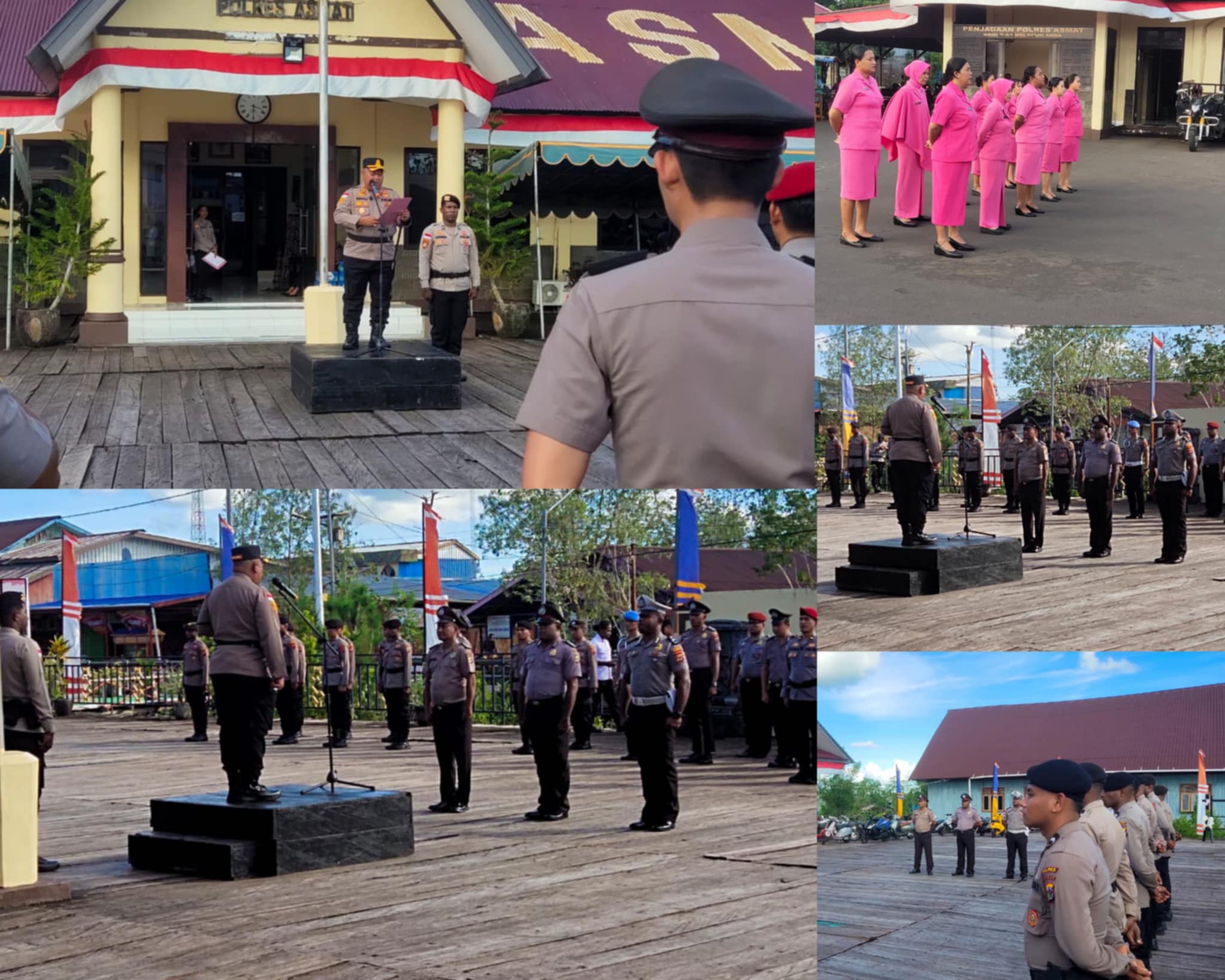 Asmat – Kapolres Asmat AKBP Wahyu Basuki, S.I.K., pimpin langsung upacara Korps Raport Kenaikan Pangkat Perwira dan Bintara Polres Asmat, Bertempat Di Mako Polres Asmat, Senin (30/06/2025).