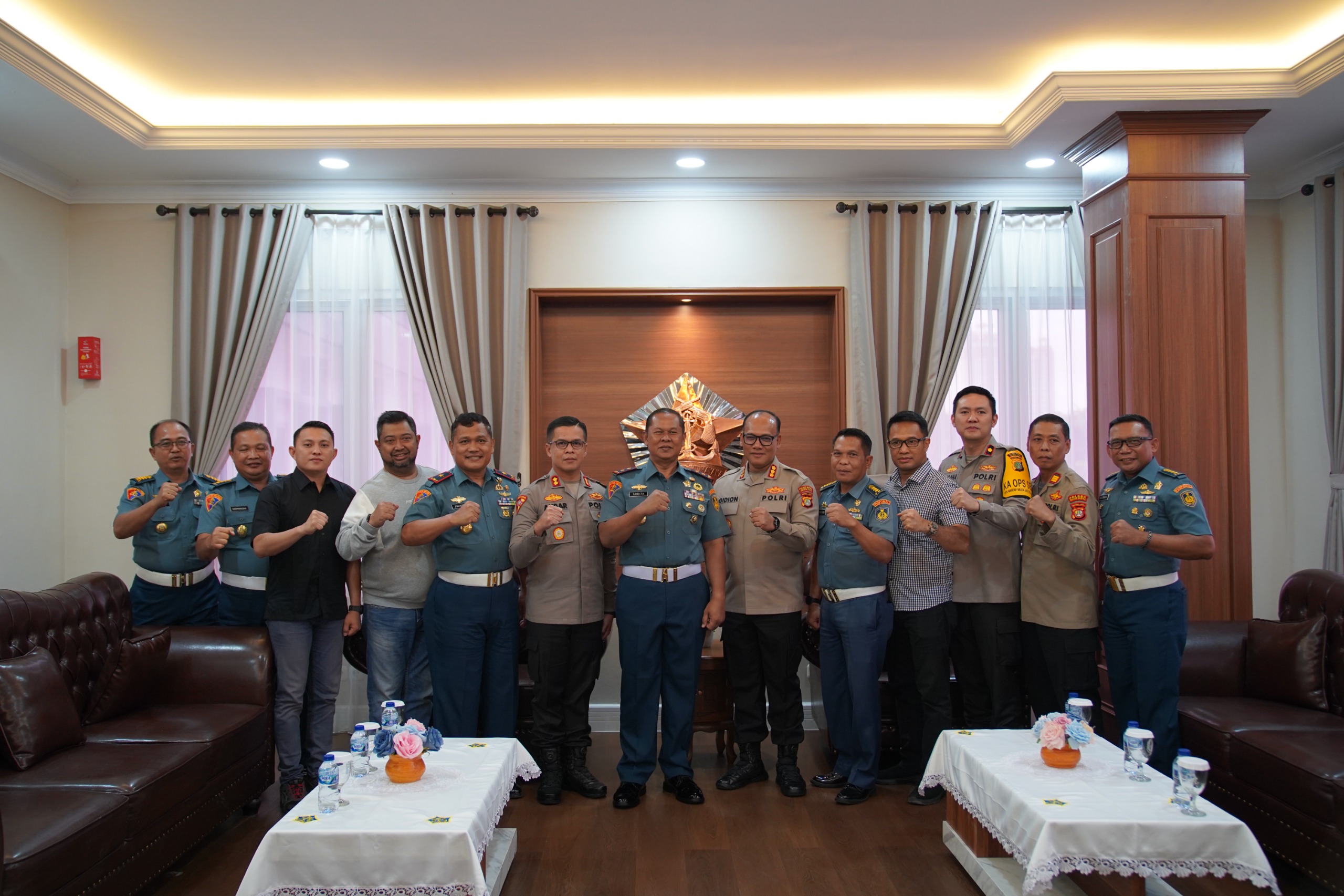 Kedatangan Kombes Pol Gidion bersama rombongan disambut dengan hangat oleh Danpuspomal Laksamana Muda TNI Samista, Wadanpuspomal Pertama TNI Julkiply dan jajaran.