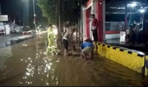 Dalam kejadian ini, Kapolresta Banyuwangi Kombes Pol Rama Samtama Putra, S.I.K., M.Si., M.H., dan personel bersama unsur terkait turun langsung ke lapangan untuk melaksanakan peninjauan juga pembersihan saluran drainase serta pengaturan arus lalu lintas di sekitar.