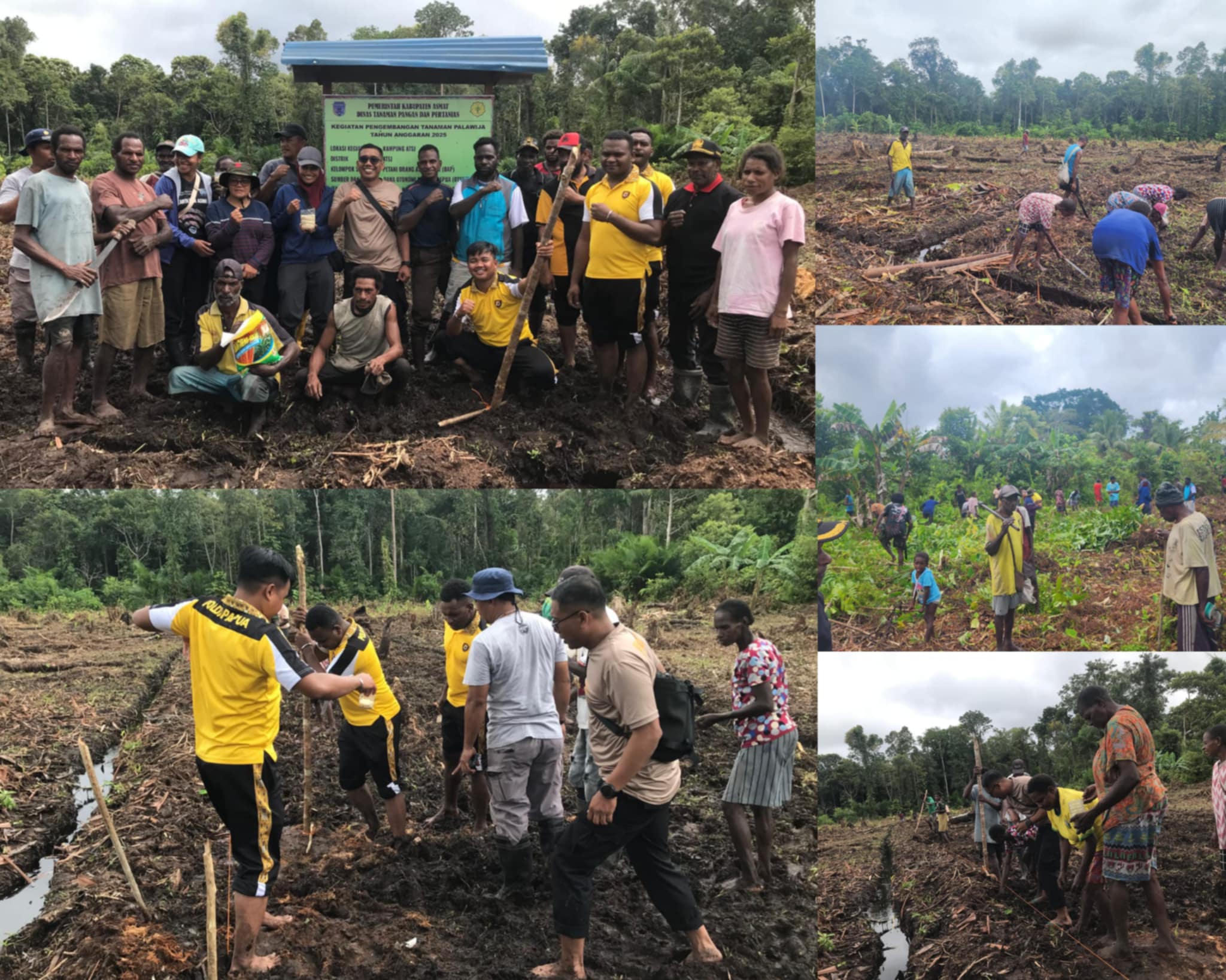 Asmat – Kapolsek Atsj Ipda I Nyoman Tunas, bersama anggota Polsek Atsj laksanakan penanaman bibit jagung, Bertempat Kampung Atsj, Jumat (15/08/2025).