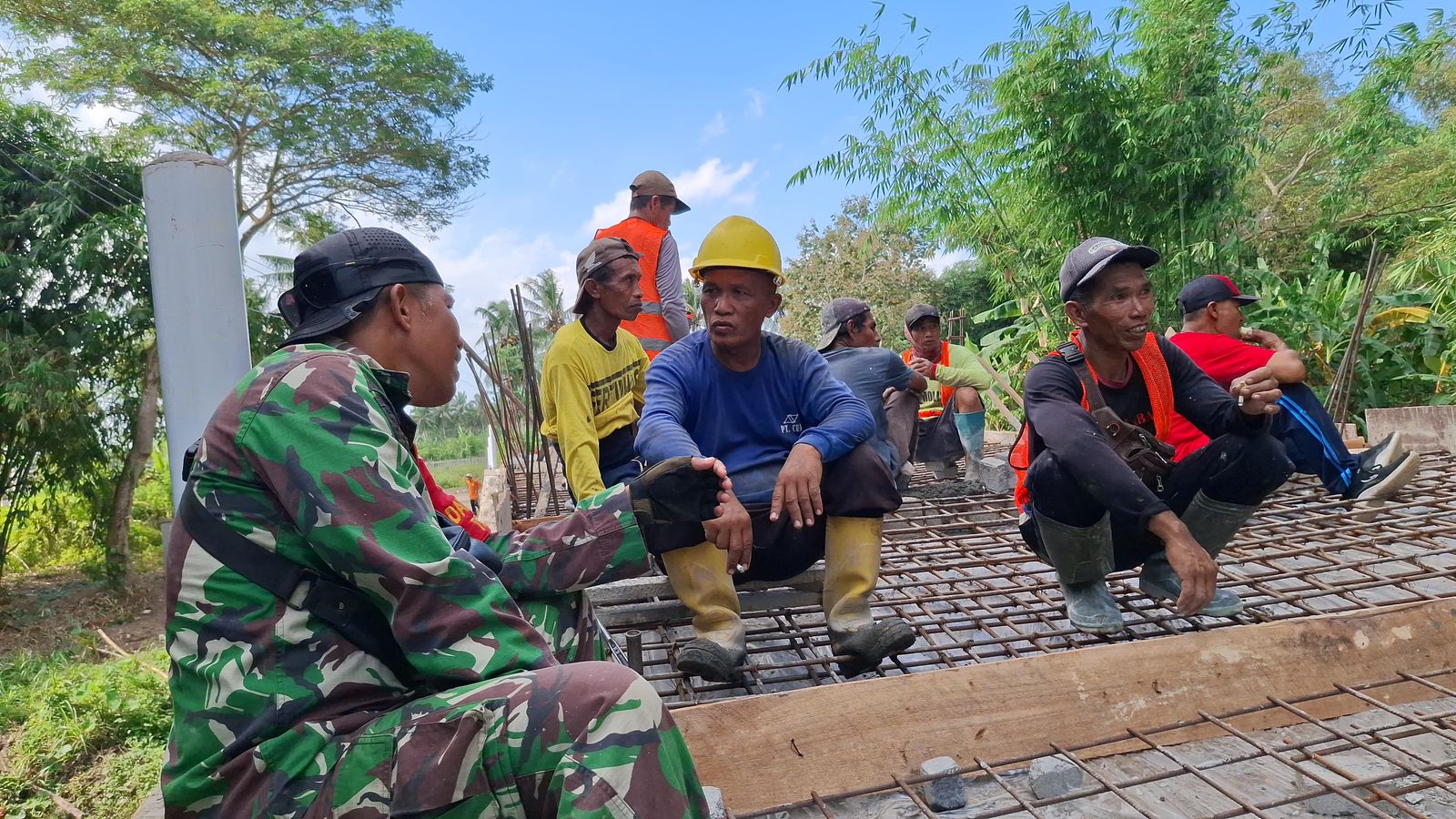 Meski teriknya matahari menyengat, keringat bercucuran, dan pekerjaan masih menumpuk, semangat gotong royong tak pernah pudar. Warga dan prajurit TNI bekerja bahu-membahu, memastikan setiap tahapan pembangunan berjalan sesuai rencana. Istirahat sejenak dimanfaatkan untuk melepas penat sekaligus mempererat hubungan.