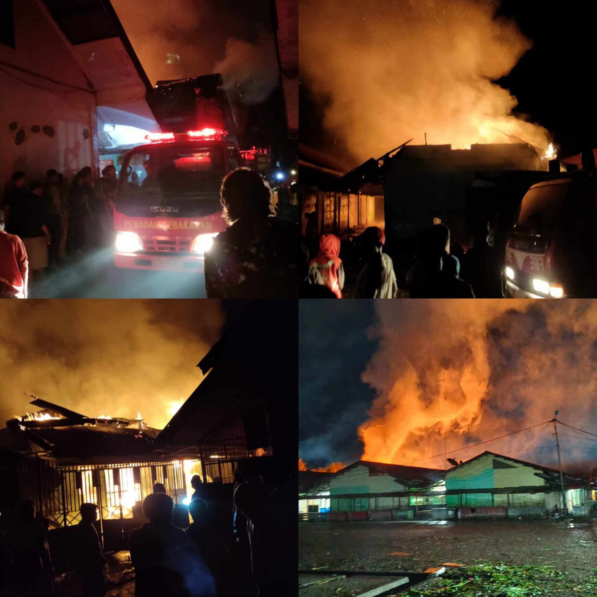 Wamena Papua Tengah – Masyarakat dikejutkan dengan adanya kebakaran yang terjadi di Pasar Jibama yang mengakibatkan 16 pintu kios hangus terbakar, Minggu (16/07) pukul 03.15 Wit.