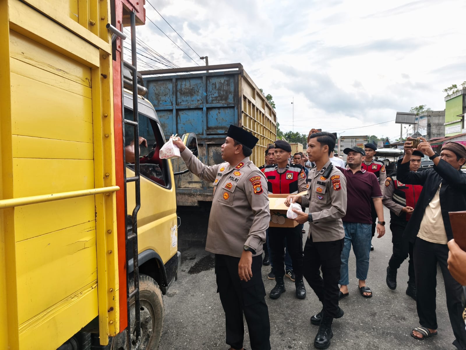 Aceh, Suaraindonesia.Online- Kapolres Subulussalam AKBP Yhogi Hadisetiawan, bersama awak media/wartawan membagikan takjil kepada para pengguna jalan di Jln. Teuku Umar, Lintas Tapaktuan – Medan di Desa Penanggalan Kecamatan Penanggalan Kota Subulussalam, Rabu, 19 Maret 2025.