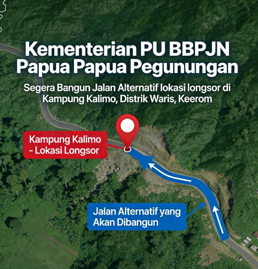 Balai Besar PJN Papua – Papua Pegunungan berencana membangun jalan alternatif di bawah titik longsor guna mempercepat mobilitas kendaraan.