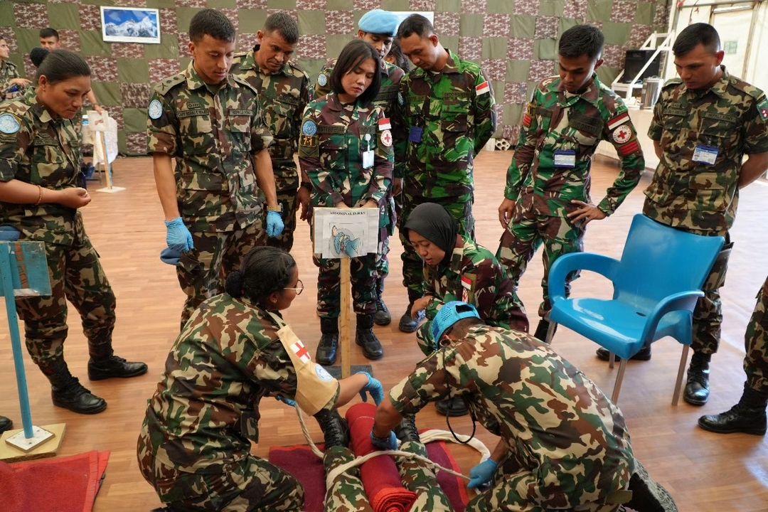 Jakarta. Gemuruh tepuk tangan ini diberikan kepada salah satu dokter andalan Satgas Indobatt XXIII-R yaitu Lettu Laut (K/W) dr. Putri rahayu ketika melatih tentara luar negeri yang saat ini tengah bersama sama dengan beberapa negara dalam menjalankan misi perdamaian dunia yang berada di Lebanon Selatan. (20/06/2024)