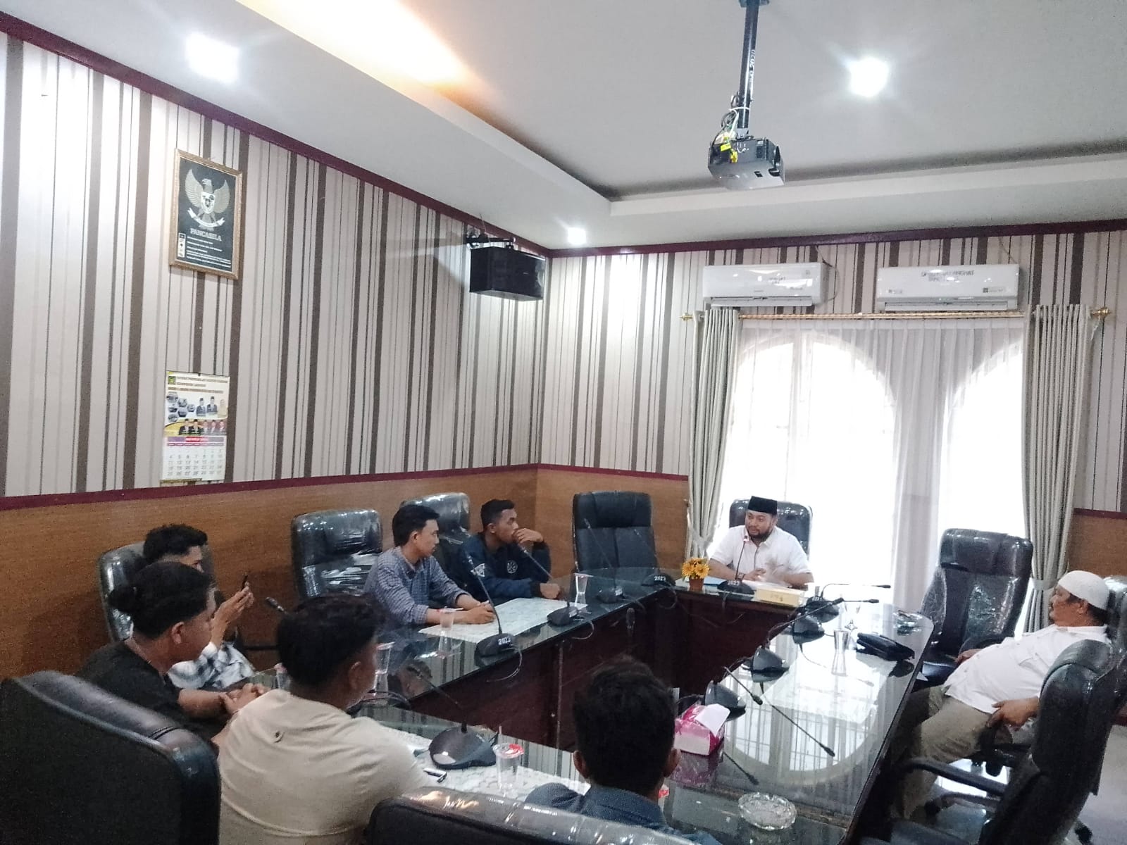 Langkat,- Ketua Komisi A DPRD Langkat M Bahri mempersilahkan masuk untuk mendengarkan aspirasi perwakilan mahasiswa yang tergabung dalam Lingkaran Mahasiswa Peduli Rakyat (Limapera) yang melakukan aksi damai di depan Panti gerbang Gedung DPRD Langkat, Provinsi Sumatera Utara. Jumat (2/8/2024)