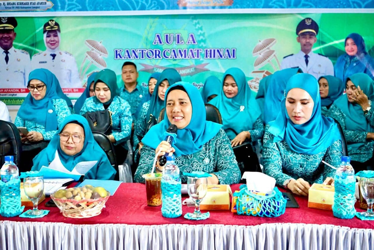 Langkat. Suaraindonesia.online- Ketua TP PKK Kabupaten Langkat, Ny. Hj. Endang Kurniasih Syah Afandin menghadiri Pertemuan Bulanan PKK Kabupaten Langkat yang digelar di aula Kantor Camat Hinai, Rabu (10/9/2025).