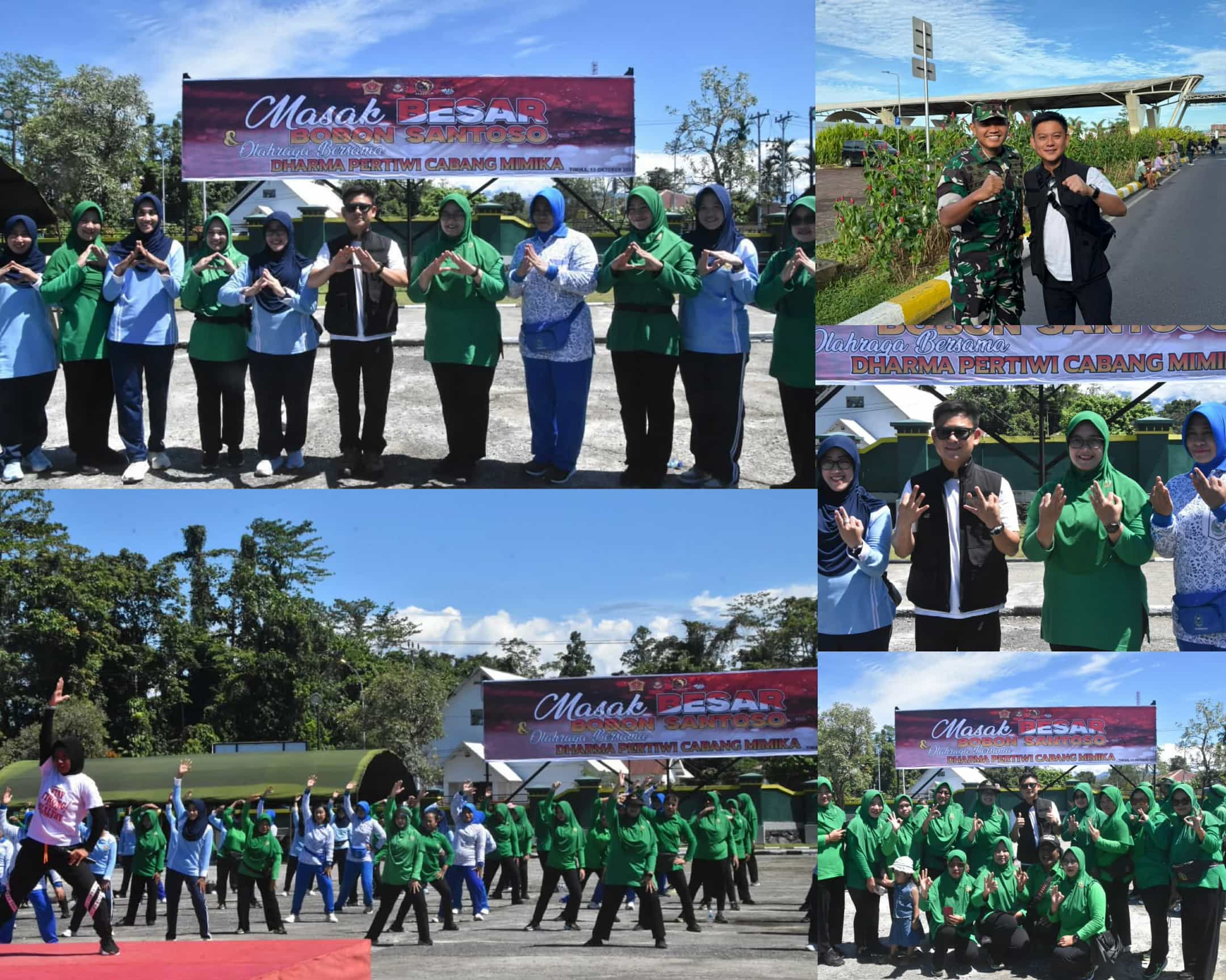 Timika ~ Bertempat di Lapangan Upacara Makodim 1710/Mimika, Kodim 1710/Mimika bersama Kogabwilhan III berkolaborasi dengan Youtuber Bobon Santoso menggelar masak besar dan Oalah Raga Bersama Dharma Pertiwi Cabang Mimika, Senin (13/10/2025).