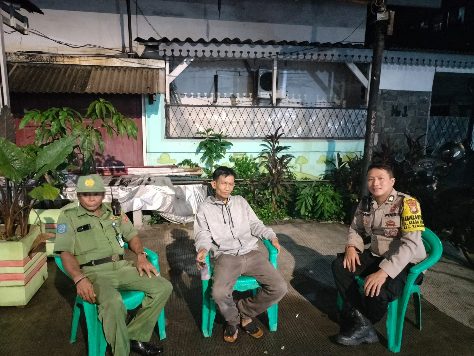Bhabinkamtibmas Kelurahan Kebon Kosong, Brigadir Yayat Ruhiyat, melaksanakan monitoring siskamling sekaligus komunikasi kamtibmas di Pos Siskamling RW 01 Kelurahan Kebon Kosong, Kemayoran, Jakarta Pusat, pada Selasa (23/12/2025) dini hari sekitar pukul 01.35 WIB.