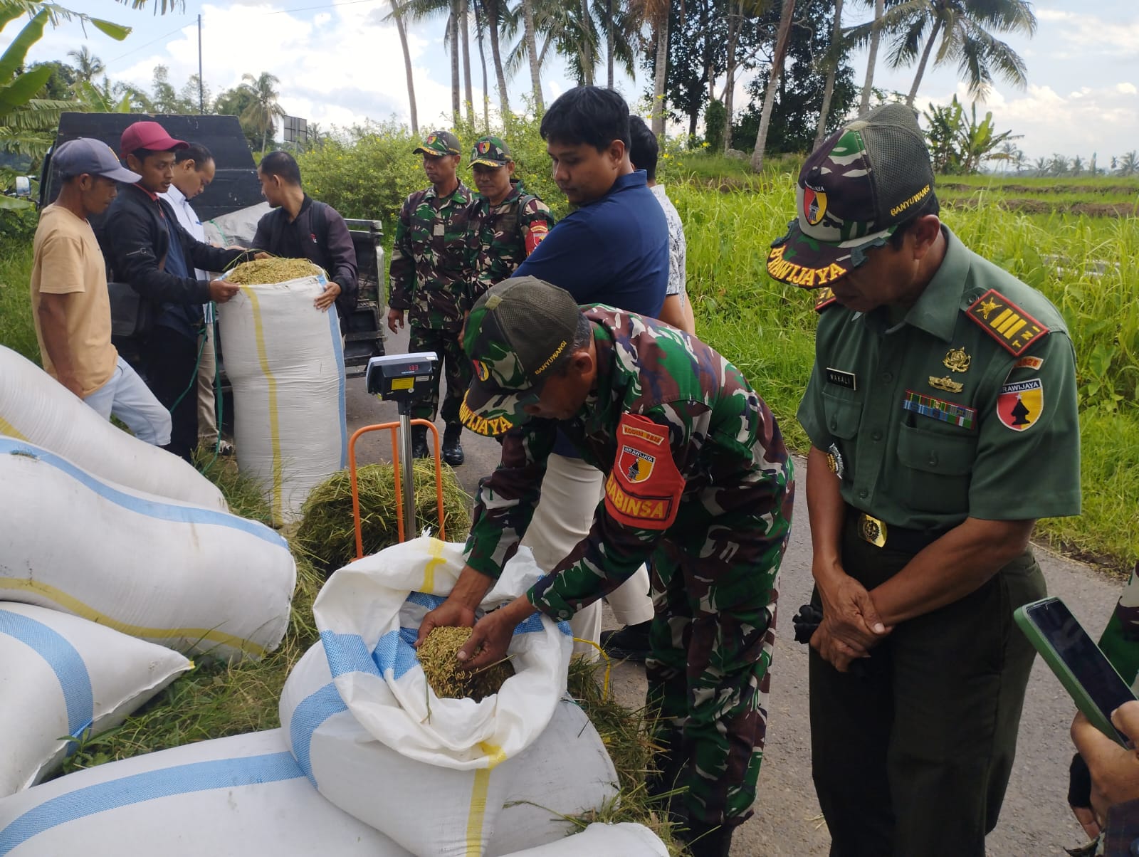 Danramil Kapten Kav Makali menyampaikan bahwa kegiatan ini merupakan bentuk nyata sinergi antara ujar dan Bulog dalam membantu petani serta memastikan hasil panen mereka terserap dengan baik.