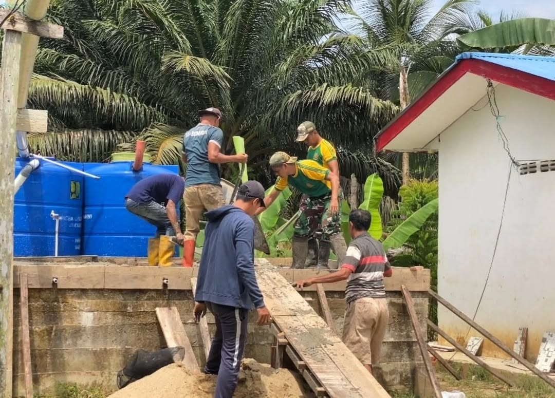 Dalam kegiatan pengecoran tersebut, personel Satgas bergotong royong bersama warga desa, mulai dari pengadukan semen, pengangkutan material, hingga proses pengecoran penampungan air yang akan digunakan sebagai sumber air wudhu dan kebutuhan lainnya di lingkungan masjid.