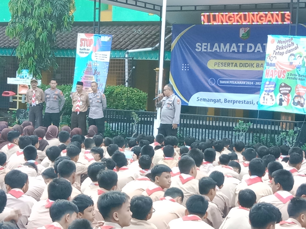 Masa Pengenalan Lingkungan Sekolah Polsek Cempaka Putih Sampaikan Imbauan Kepada Peserta Didik Baru