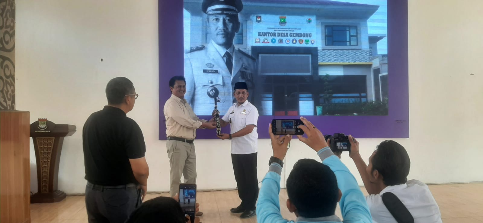 Willy Patria selaku Camat Balaraja melalui kepala desa Gembong, H. Nurjen menjelaskan bahwa rombongan peserta Studi banding dari kabupaten Paser provinsi Kalimantan Timur diterima dengan baik di aula kecamatan Balaraja dikarenakan kantor desa Gembong dalam masa pembangunan.