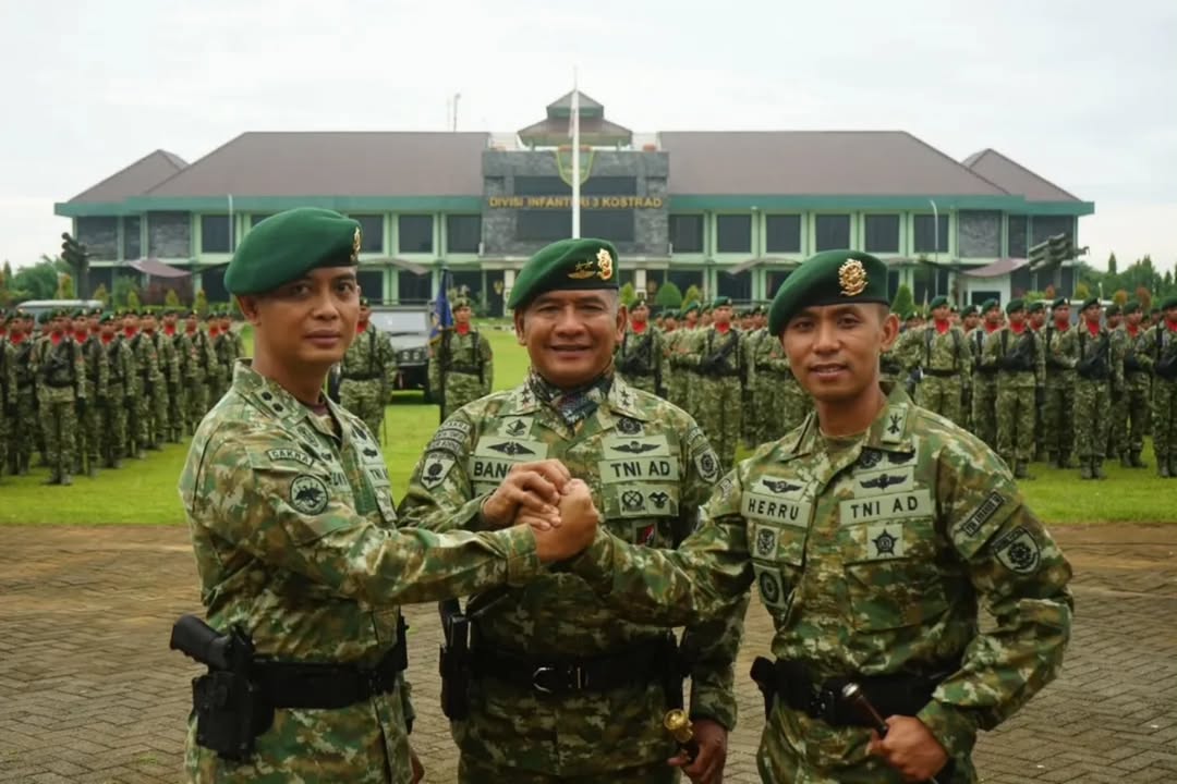 Gowa — Panglima Divisi Infanteri 3 Kostrad, Mayjen TNI Bangun Nawoko, memimpin langsung upacara Serah Terima dan Penyerahan Jabatan Asisten Perencanaan (Asren), Danyon Armed 6/TMR, Danyon Arhanud 16/SBC, Dandenma, serta Dandenhub Divif 3 Kostrad. Upacara dilaksanakan di lokasi penuh makna, Gerbang Kemenangan Divif 3 Kostrad, Gowa, Sulawesi Selatan, Selasa (24/6/2025).