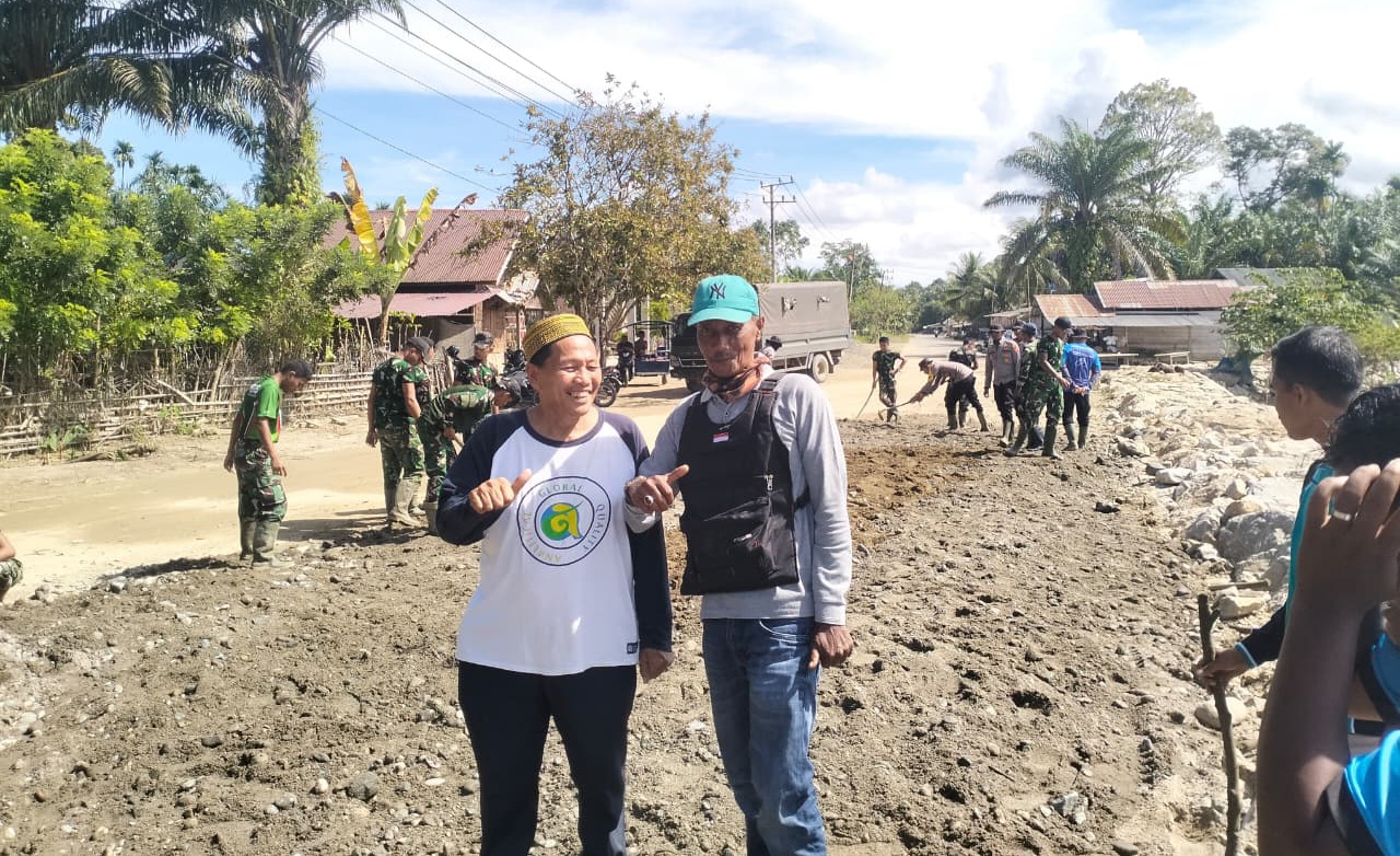 Gotong royong perbaikan jalan dibantu oleh personel TNI dan Polri, Keuchik Gampong dan perwakilan dari PT. Fajar Baizuri & Brother, PT. Socfindo, PT. SPS 1, PT Giat, dan Adriel Tambak Udang. Mereka membantu membersihkan lumpur di jalan dan mengatur arus kendaraan saat pengerjaan berlangsung, serta membantu proses teknis lainnya agar pekerjaan dapat berjalan lancar.