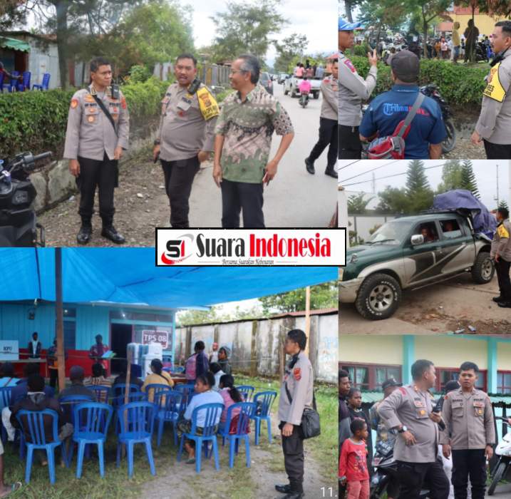 WAMENA – Demi lancarnya pelaksanaan PSU Pemilu 2024, Kapolres Jayawijaya AKBP Heri Wibowo, S.IK bersama Pamatwil Polda Papua Kombes Pol Ari Wahyu Widijananto, S.IK memantau langsung pelaksanaan PSU di TPS yang berada di Distrik Wamena dan Distrik Hubikiak, Sabtu (24/02) pagi.